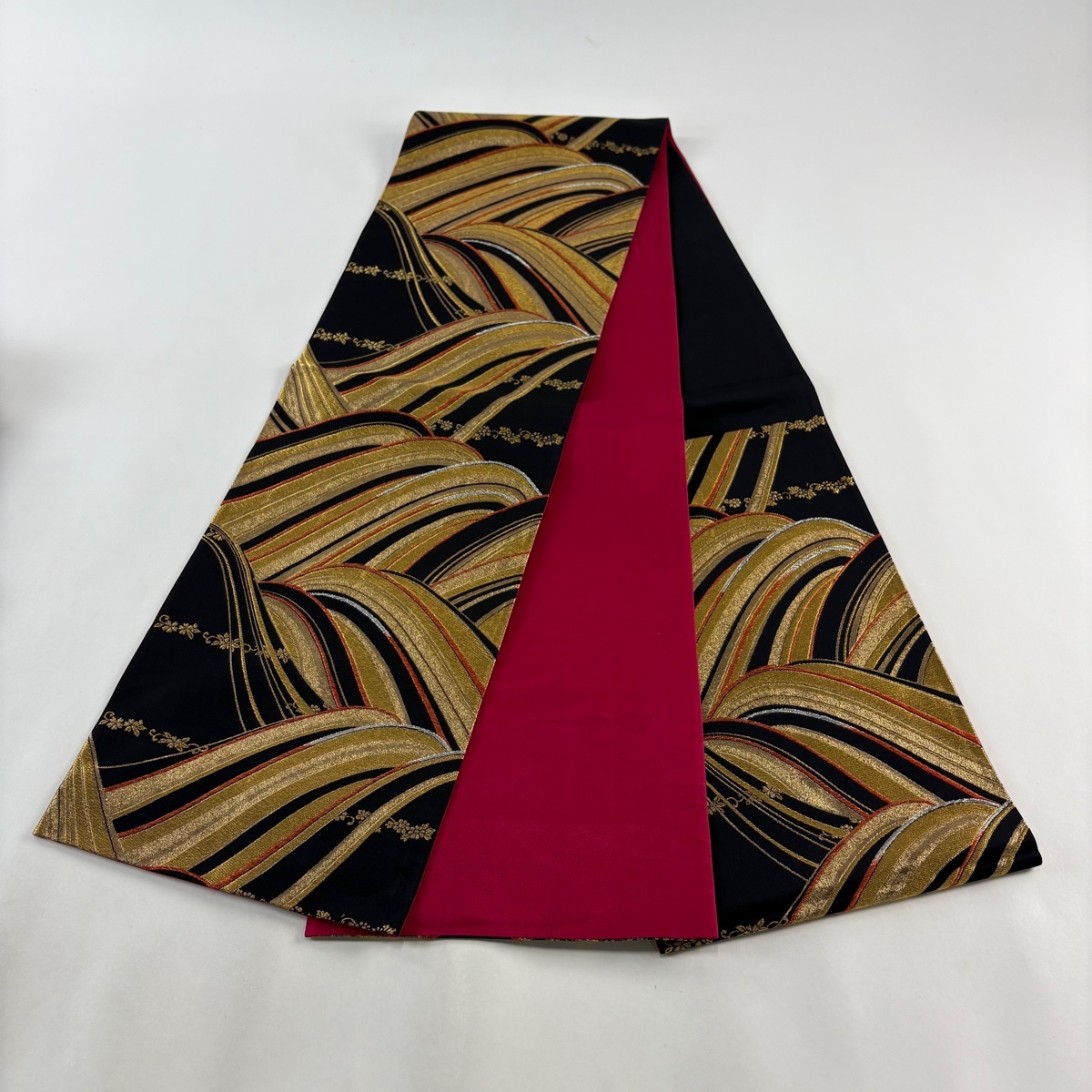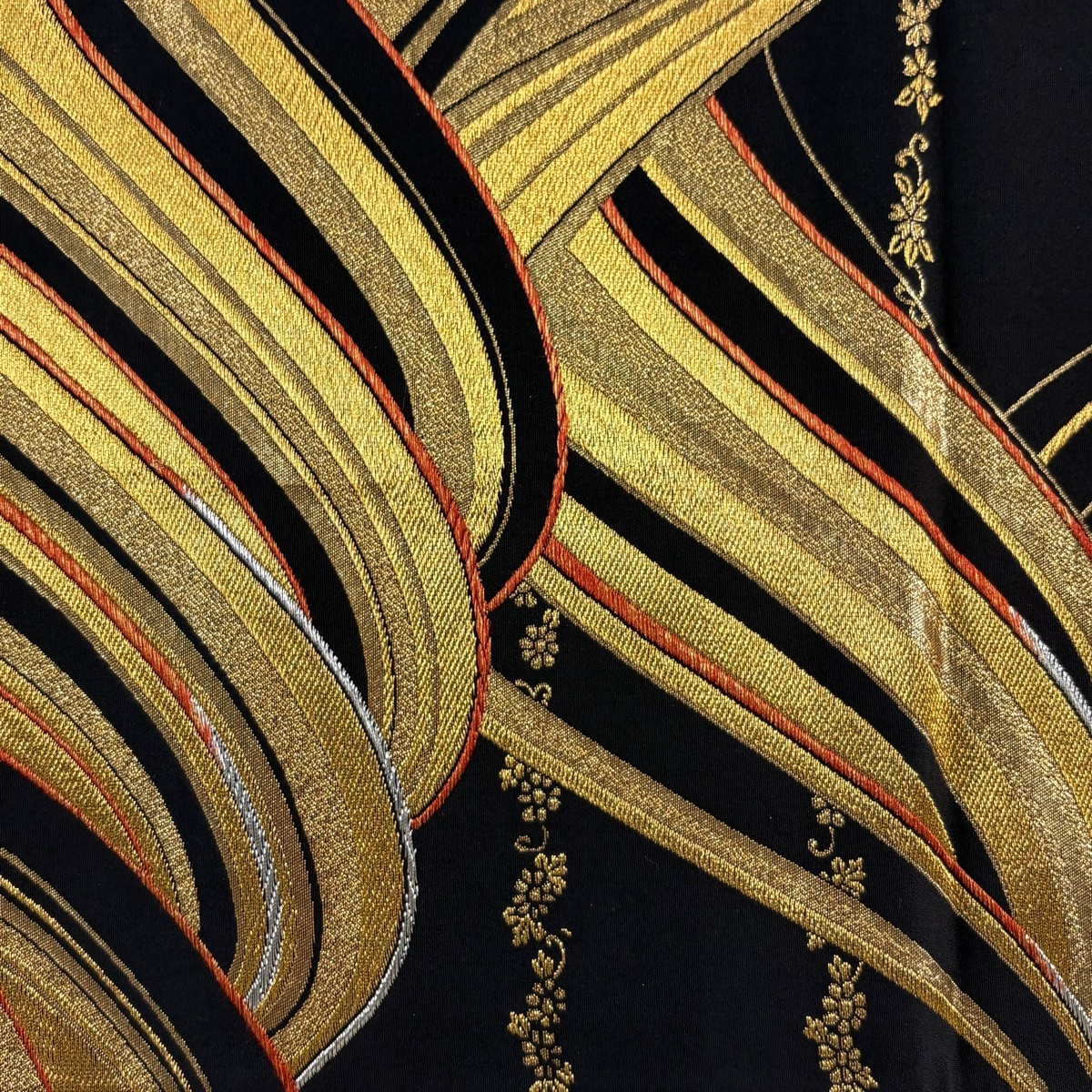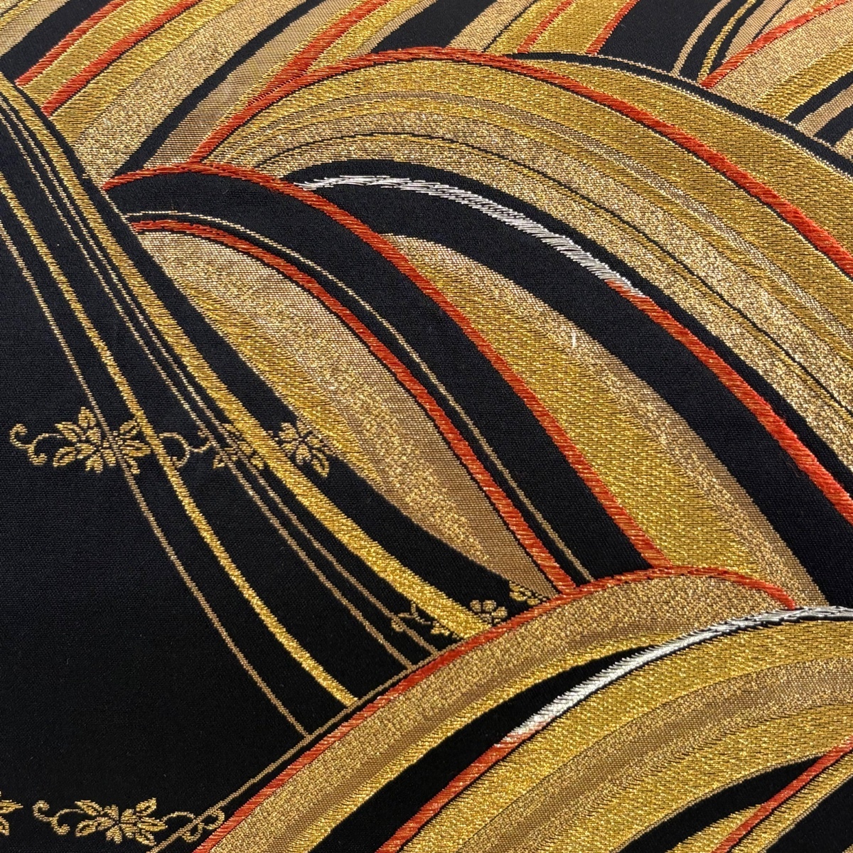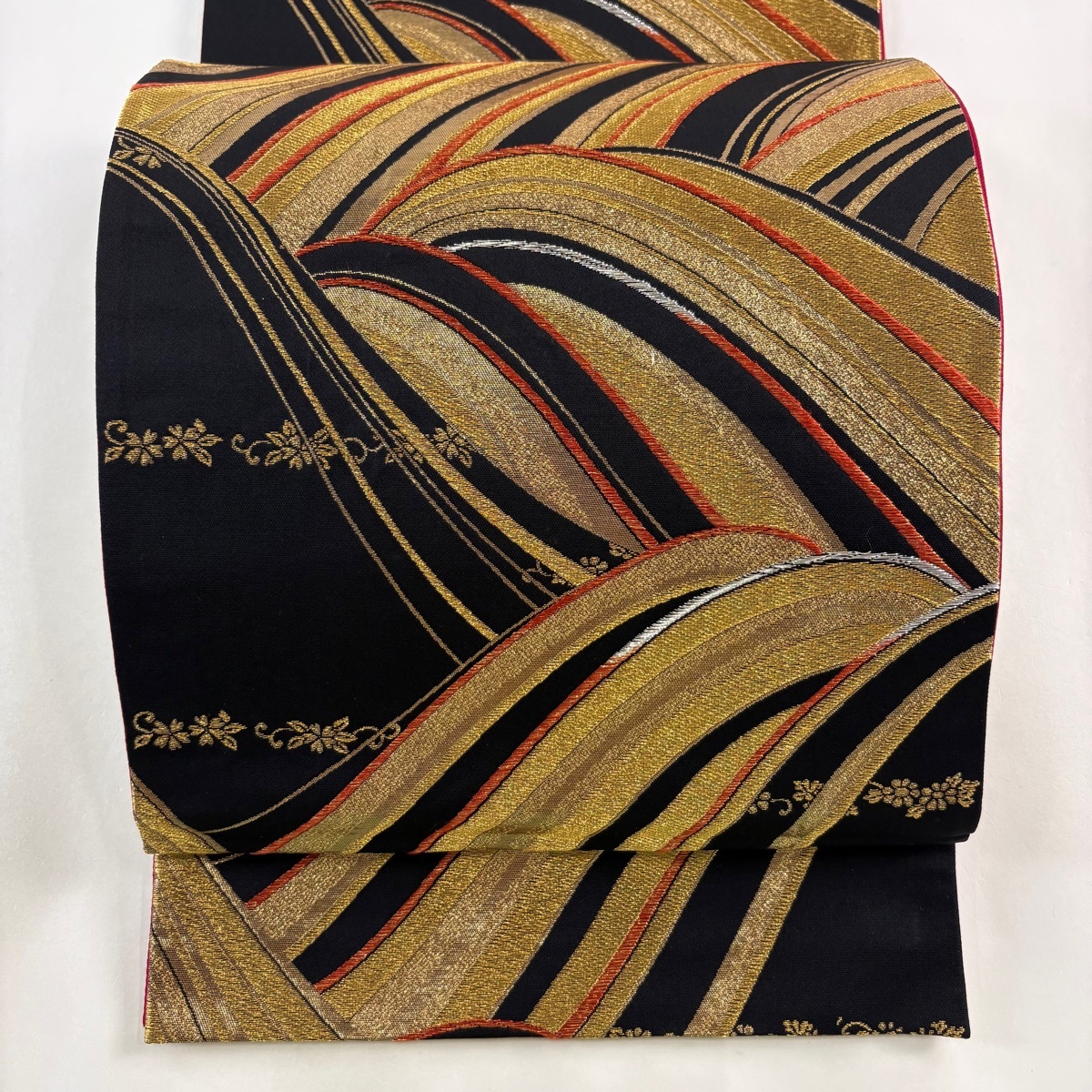 | 袋帯 秀品 波 花唐草 金糸 箔 黒 六通 正絹 【中古】 |