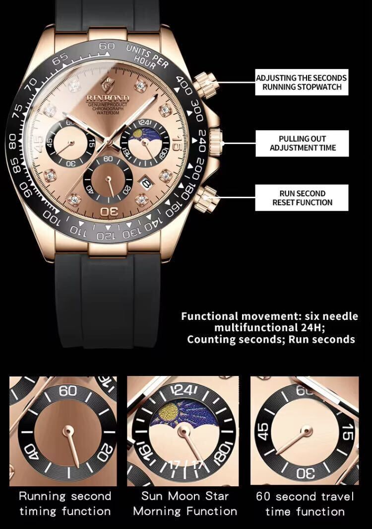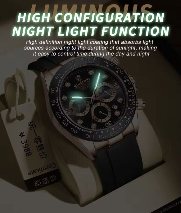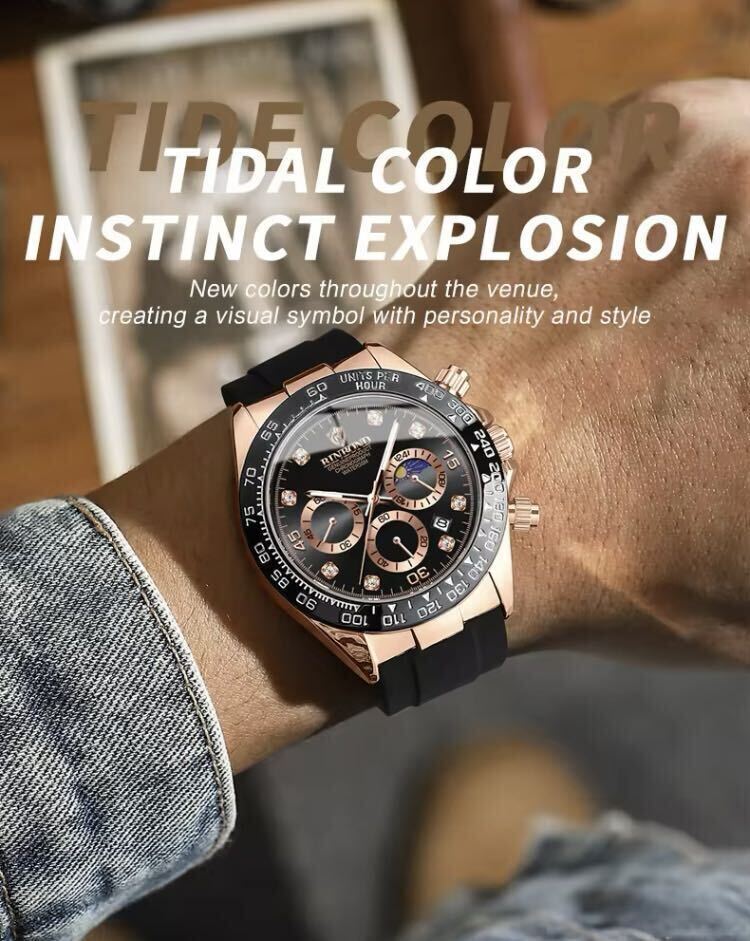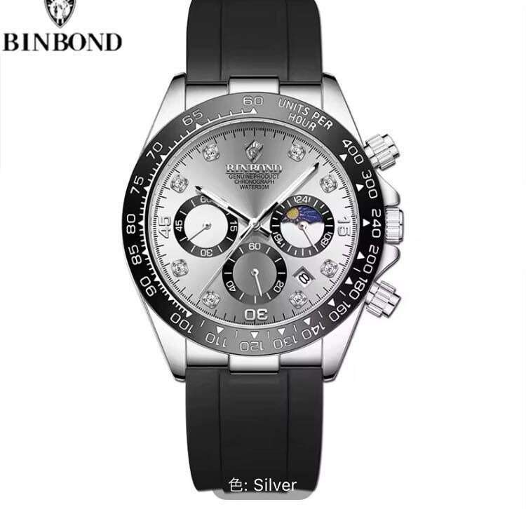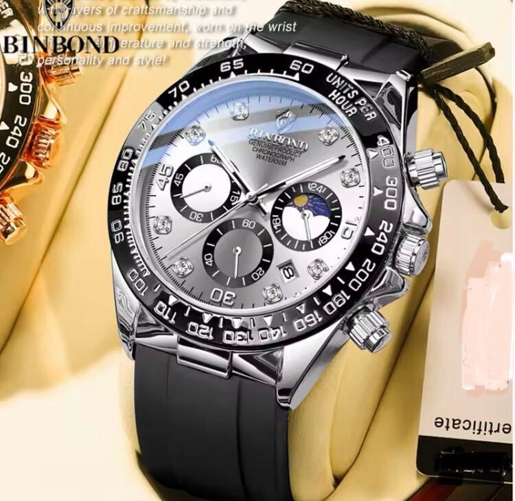 新作 メンズ腕時計 ビジネスウォッチ スポーツ腕時計 シルバーブラック 2024年モデル ストップウォッチ ジルコニア