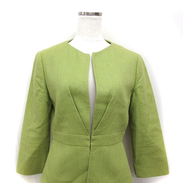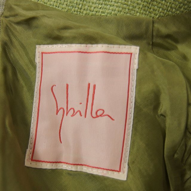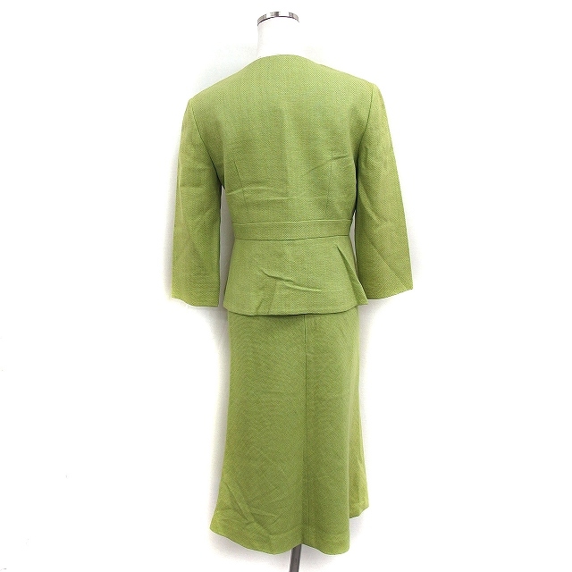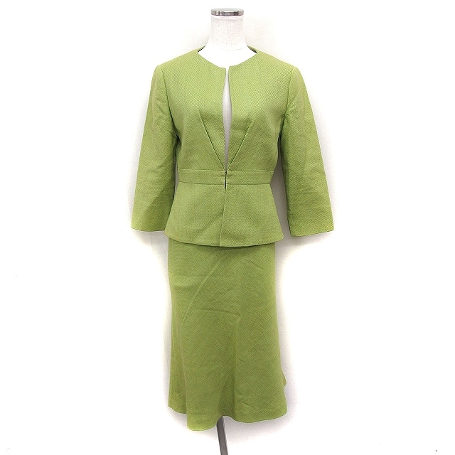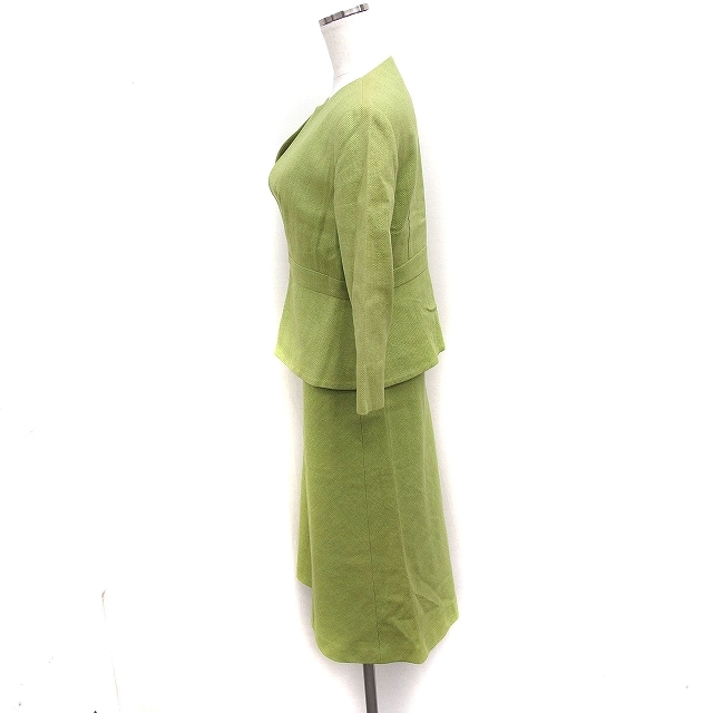 シビラ SYBILLA スカートスーツ ノーカラージャケット & フレアスカート ミディ丈 無地 M グリーン 緑 /FT43 レディース