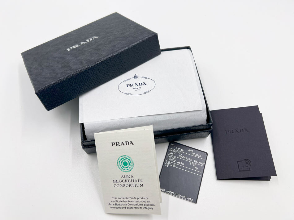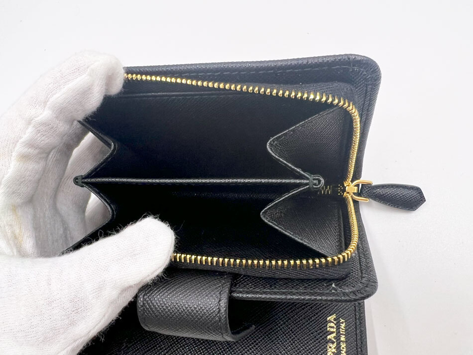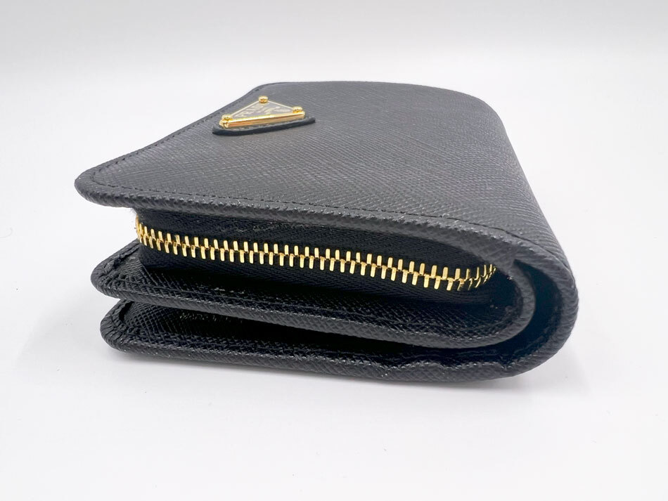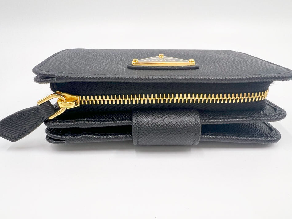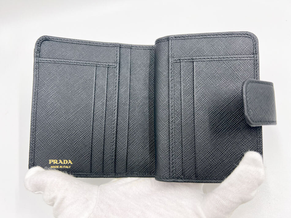 商品説明 | ◎スナップ開閉式 L字ファスナー小銭入れ×1 カード入れ×4 札入れ×1 ポケット×5 プラダのコンパクトな2つ折り財布です。 |