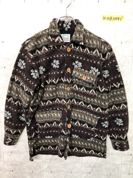 Park One キッズ 葉っぱ 総柄 フリースジャケット カーキ 150