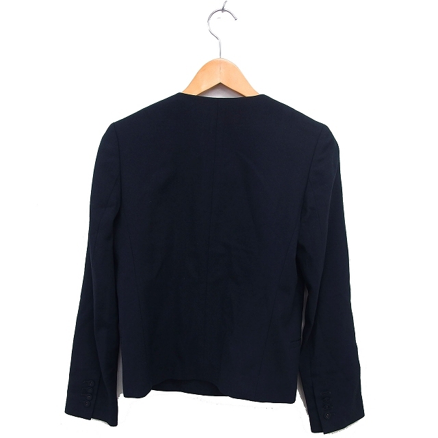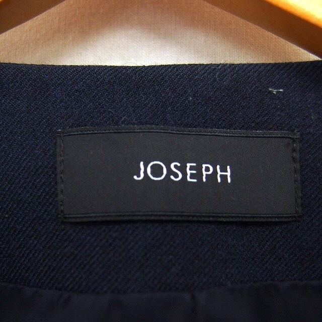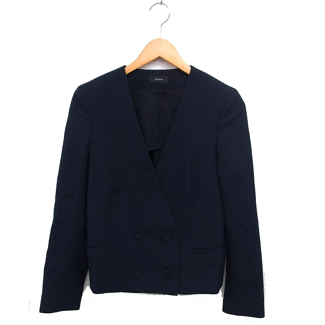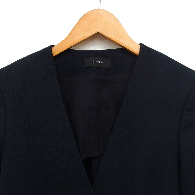 ジョセフ JOSEPH ノーカラー ジャケット ダブル ウール 背抜き 36 黒 ブラック /NT21 レディース