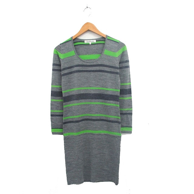 ピンキー&ダイアン ピンダイ PINKY&DIANNE ニット ワンピース 長袖 膝丈 ボーダー 38 グレー 灰 /KT28 レディース