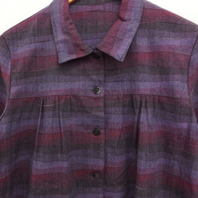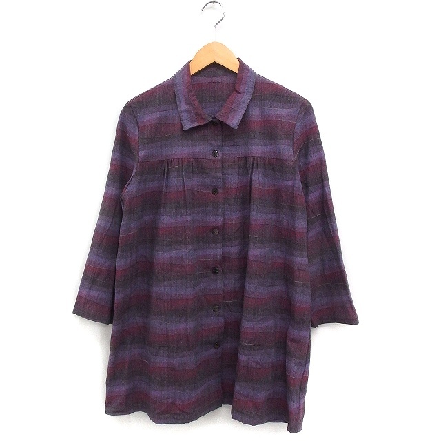 atelier 翠 sui 柄 シャツ チュニック 長袖 コットン 綿 M-L パープル 紫 /FT23 レディース
