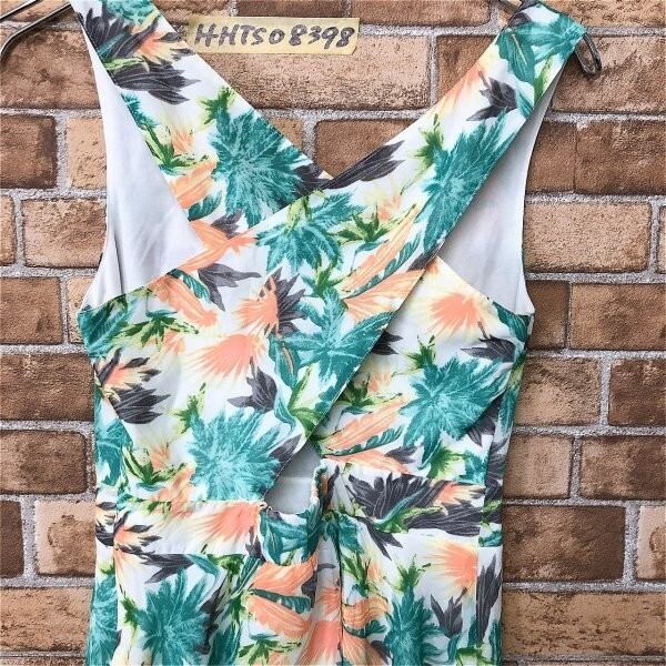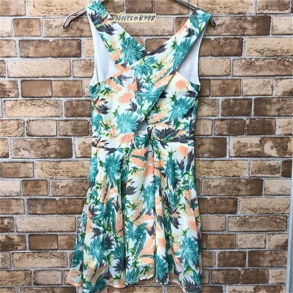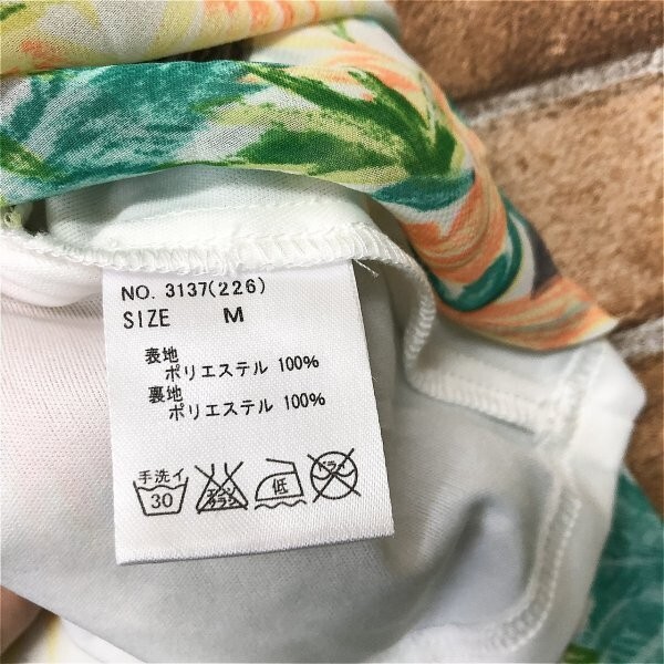 CECIL McBEE セシルマクビー レディース ボタニカル柄 バッククロス ミニワンピース M 白緑オレンジ