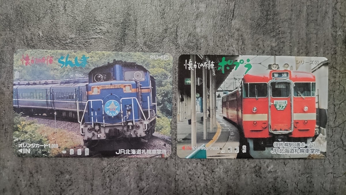 【送料込】【使用済】懐かしの列車「らんしま」「ポプラ」のオレンジカード2枚セットです。