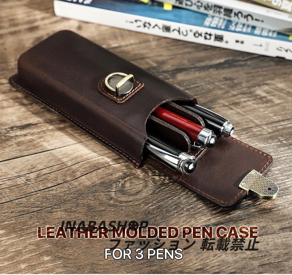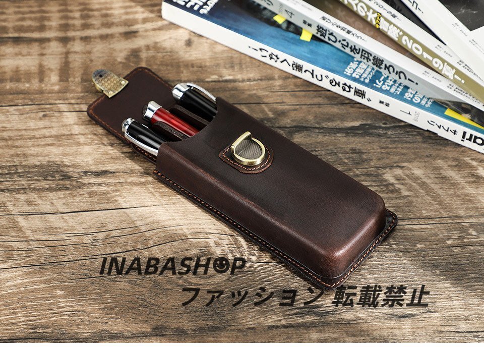 ペンケース 本革 牛革 3本差し シンプル おしゃれ コンパクト 軽い 小さめ スリム 筆箱 ふで箱 万年筆 ふでばこ ペン ポーチ 革小物 文房具