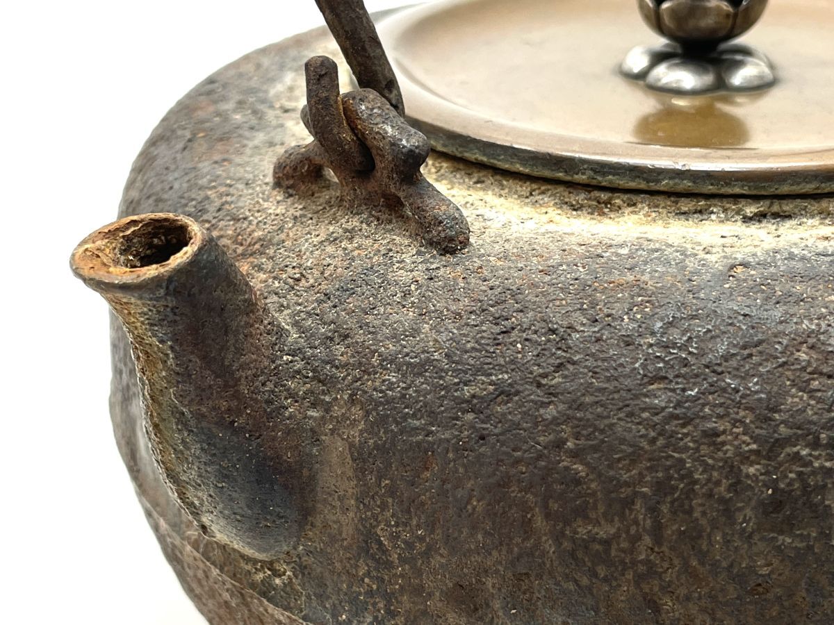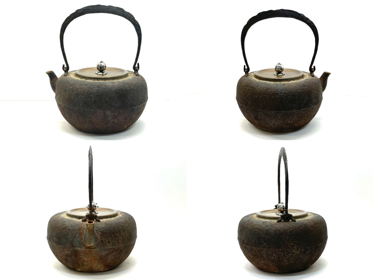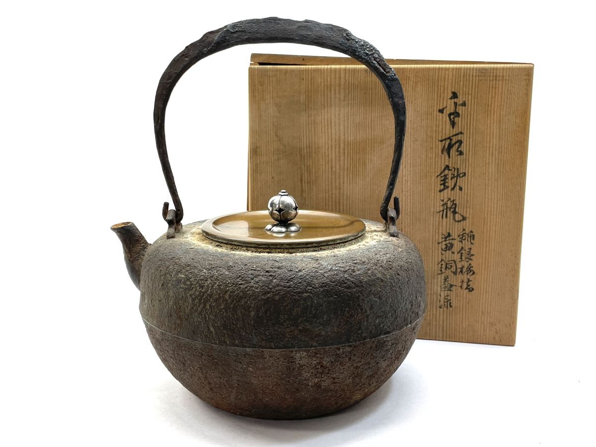 【R057】煎茶道具 鉄瓶 釜師 忠三郎 純銀摘 共箱 古作 黄銅蓋 年代物 希少 b | ||