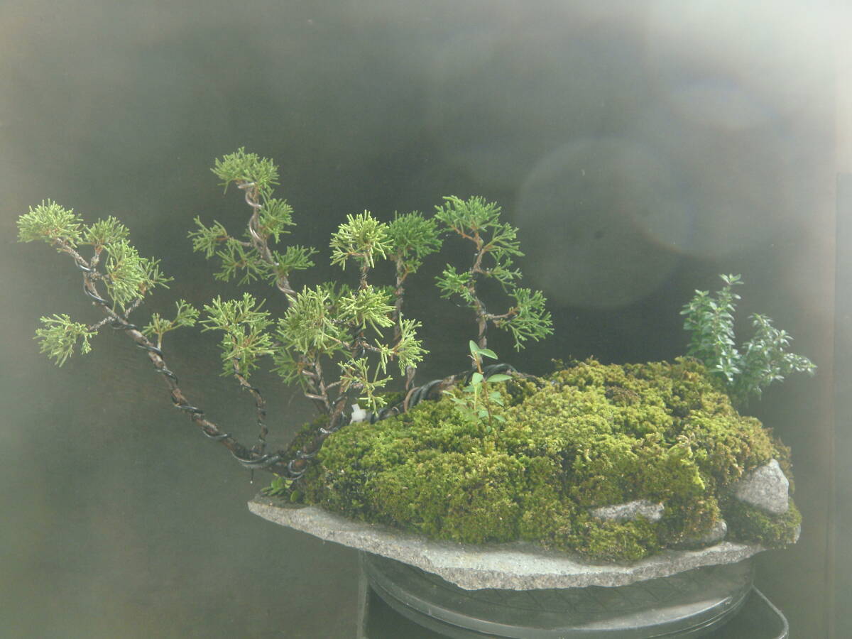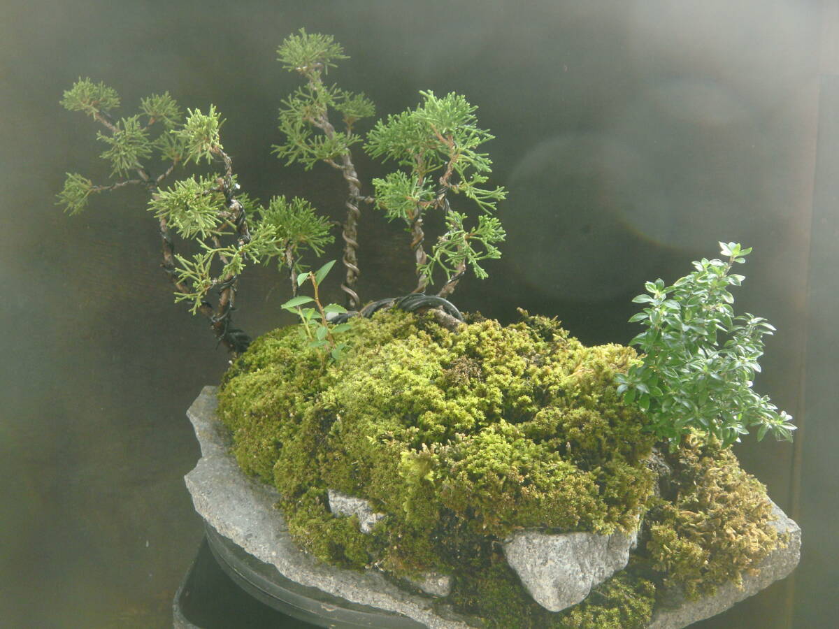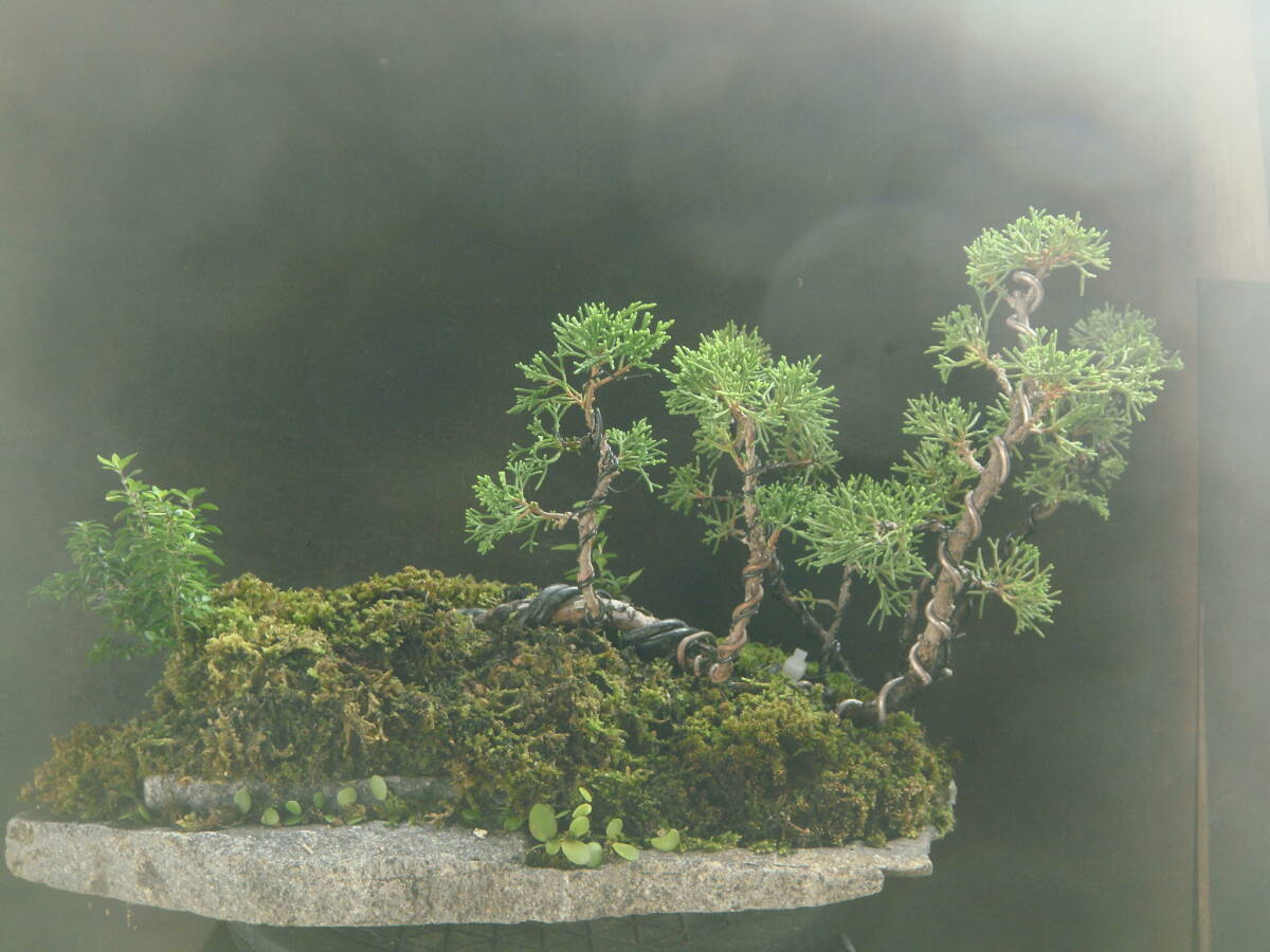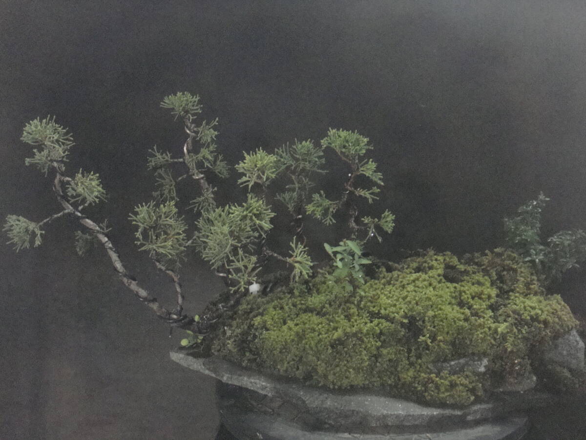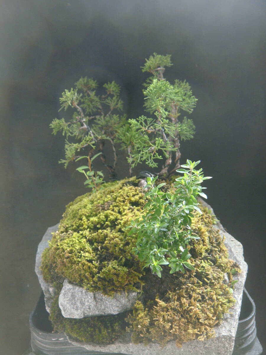 幹を寝かせ根連なりで林を作り、鉄平石に植え付けてみました。5年位かかりました。