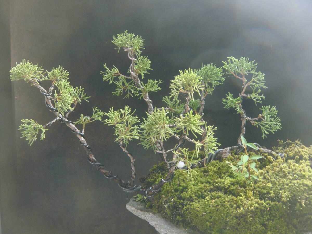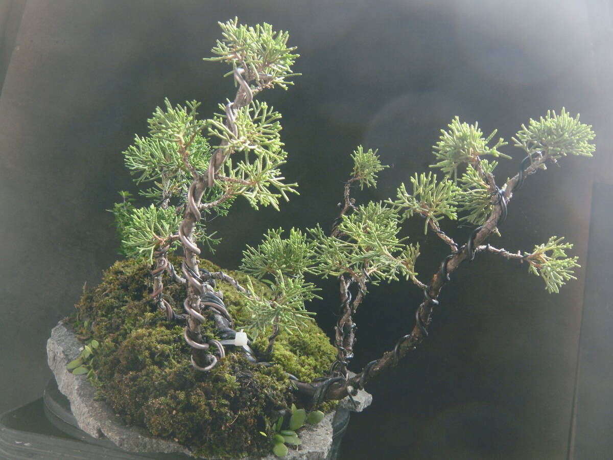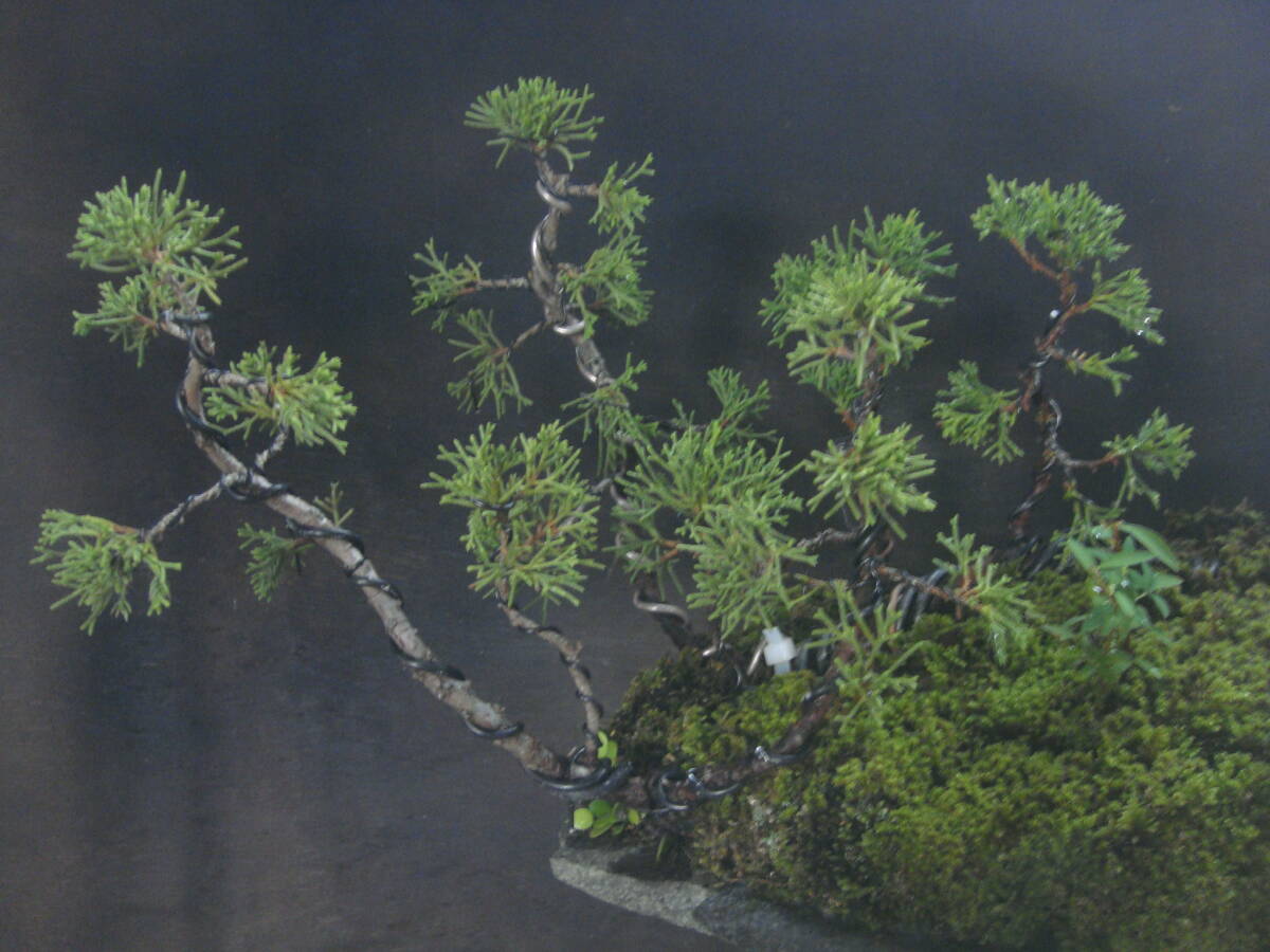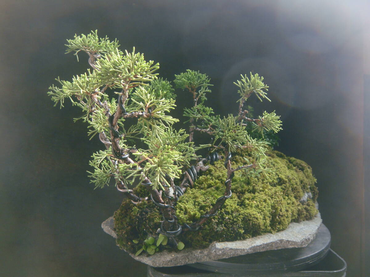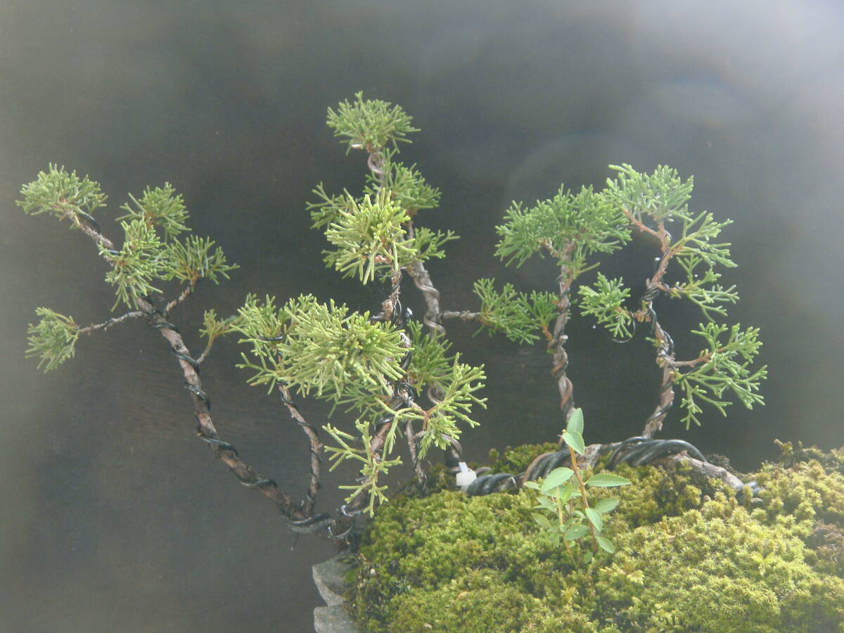 幹を寝かせ根連なりで林を作り、鉄平石に植え付けてみました。5年位かかりました。