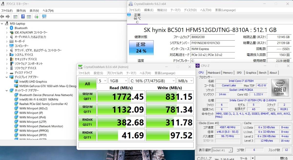 | ハードディスク: 爆速NVMe式 SSD 512GB超高速ドライブを搭載 静かで耐衝撃性に優れ、OSやプログラムなどのソフトの起動速度が大幅に高速化します!! |