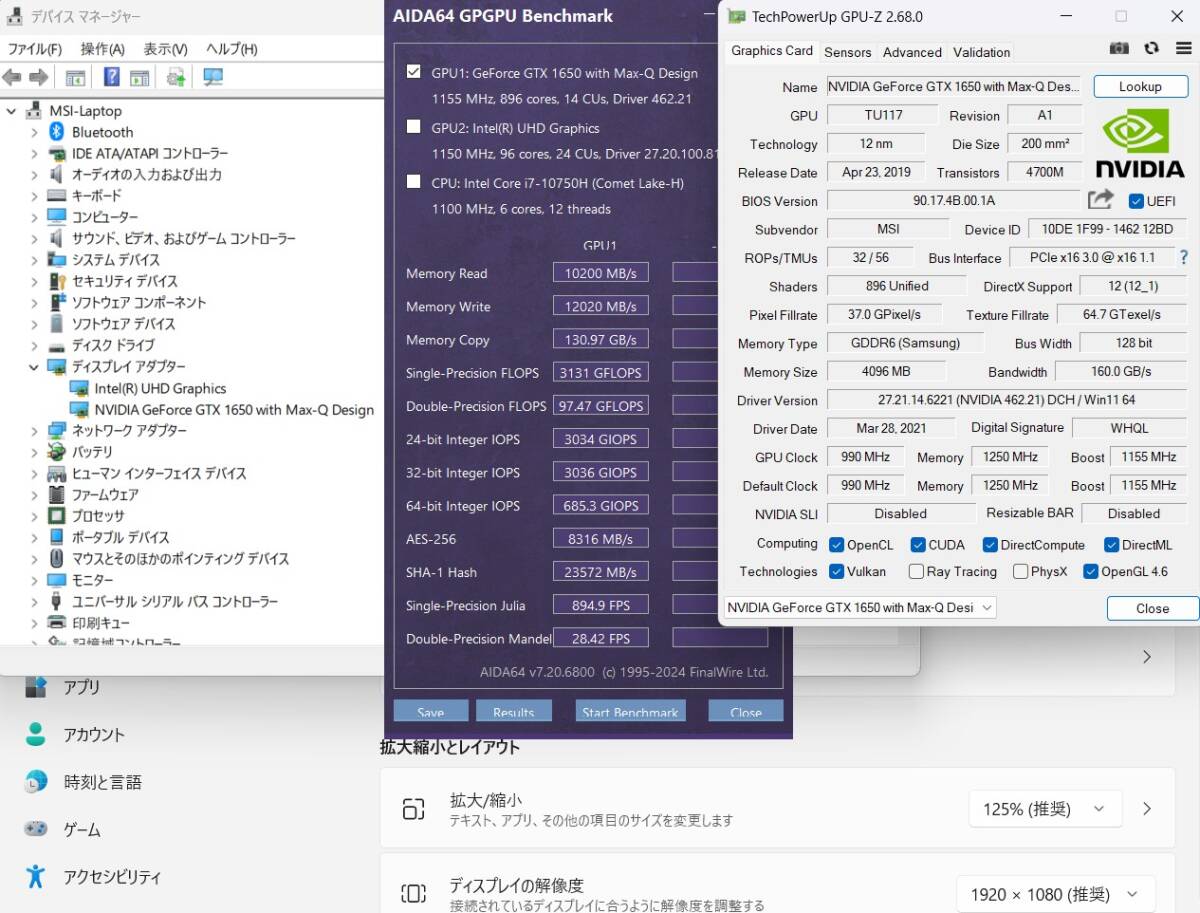 | ディスプレイ: フルHD 15.6インチ高輝度 広視野角 LEDバックライト 1920 x 1080解像度 グラフィックス NVIDIA GeForce GTX 1650 with Max-Q Design 搭載、大容量 4096M専用ビデオメモリーvRAM 快適使用体験! |