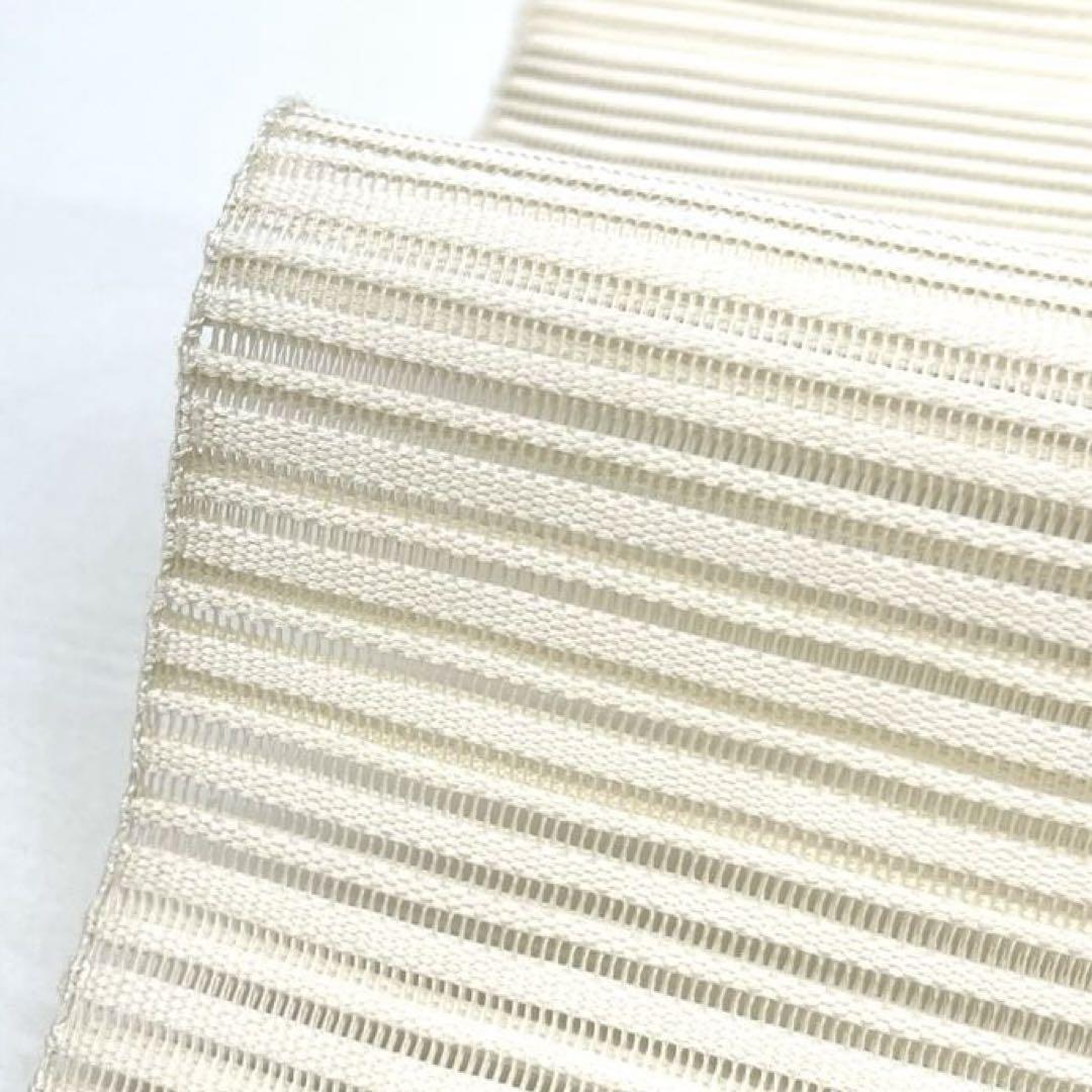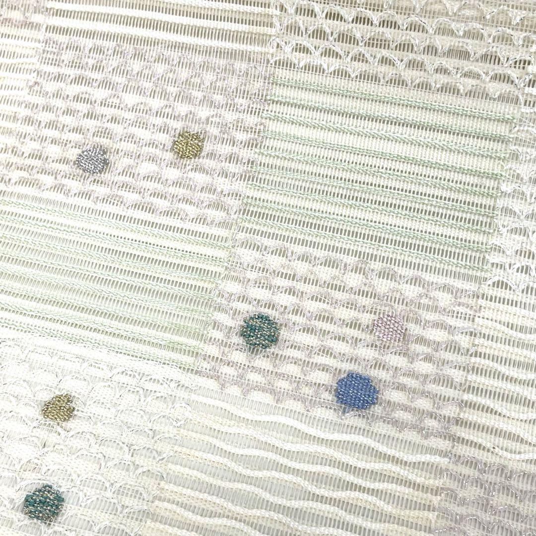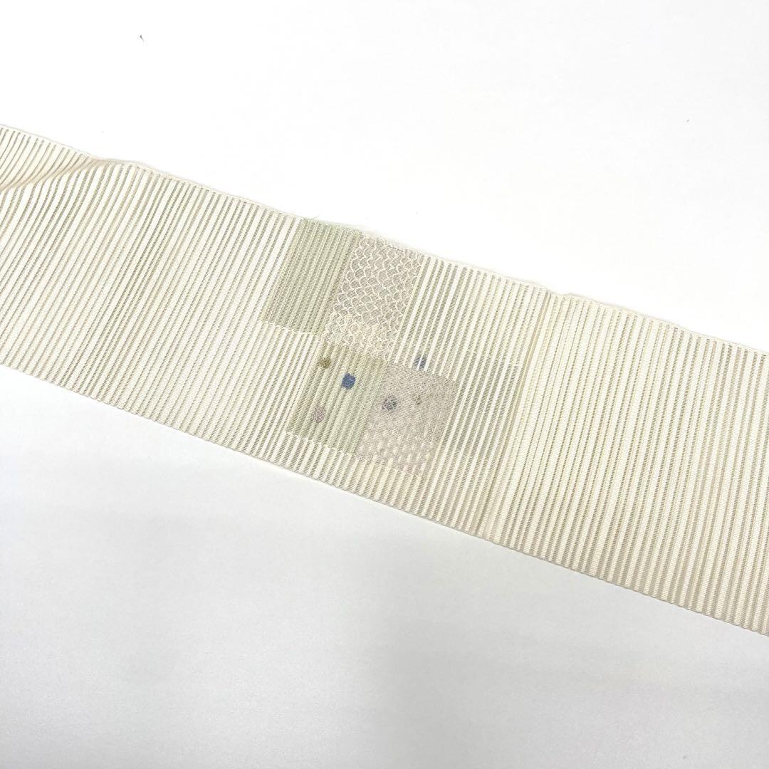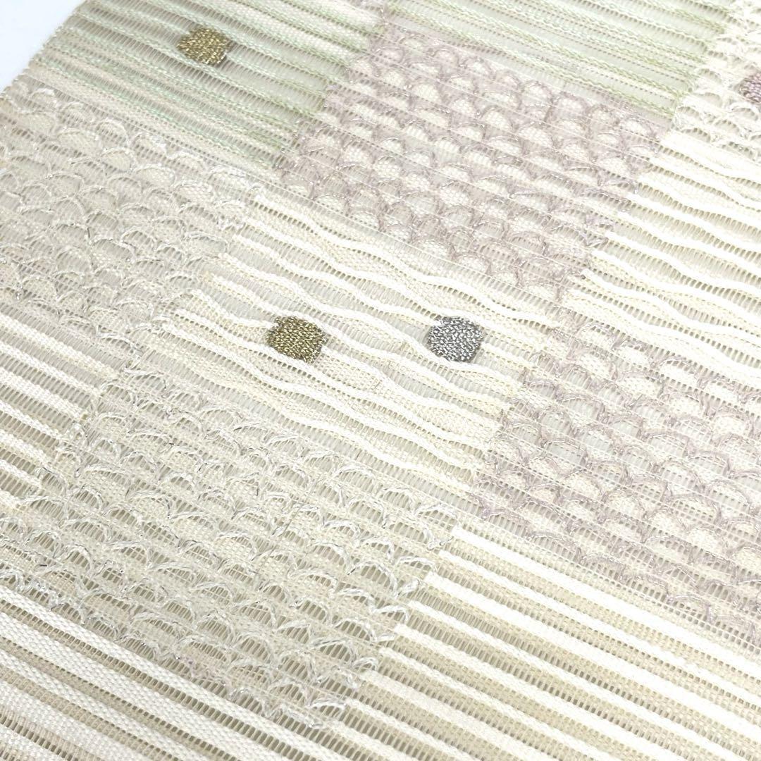 涼やかなオフホワイトにパステルの彩りを加えた帯は、