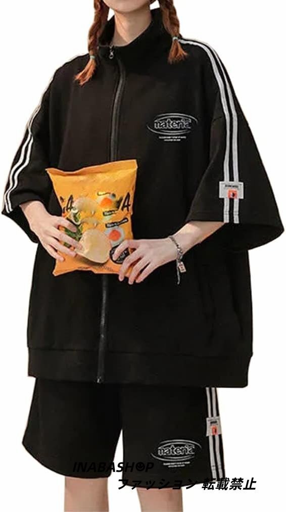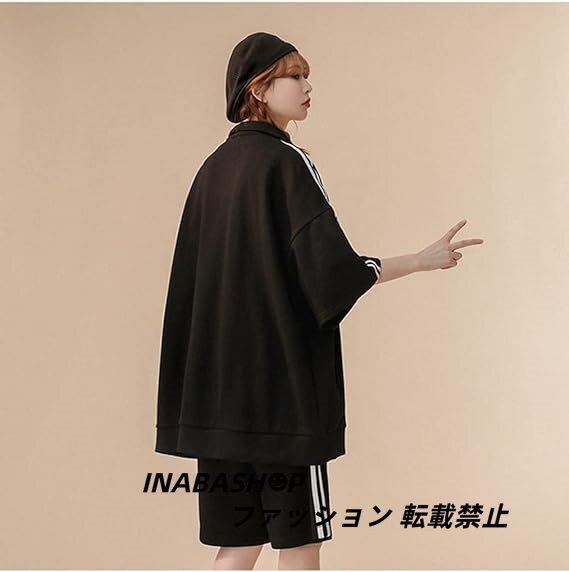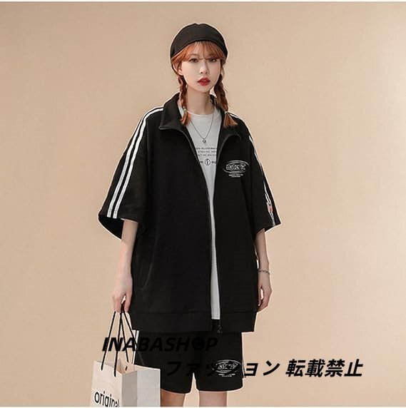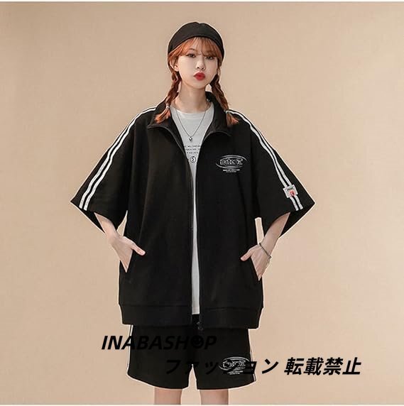 春夏 半袖ジャージ レディーズ 上下セットアップ 五分袖 パーカー ショートパンツ 2点セット スポーツウェア ゆったり カジュアル 韓国風