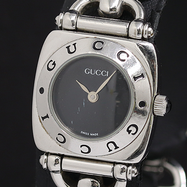1円 稼働 グッチ ホースビット 6400L QZ ブラック文字盤 レディース腕時計 4852100 8ANT SMZ