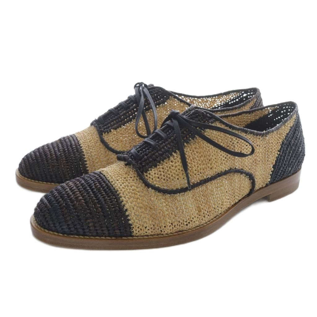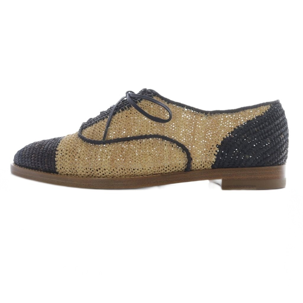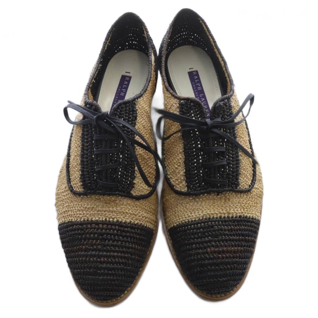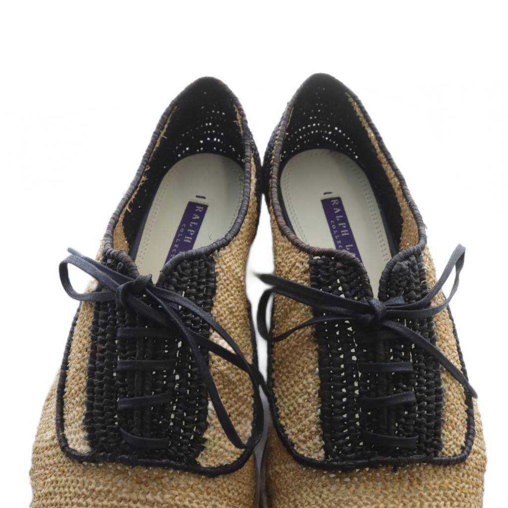 ラルフローレンコレクション Ralph Lauren COLLECTION ラフィア ドレスシューズ 切替 ベージュ 5D 黒 ブラック /SR18 レディース