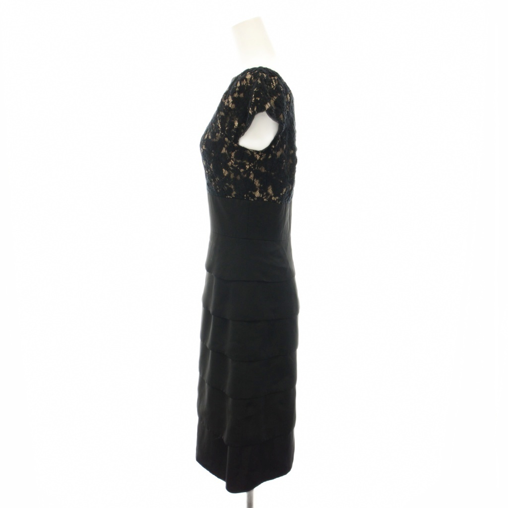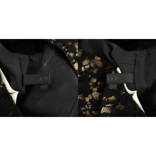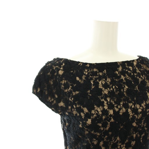アナイ ANAYI ワンピース ひざ丈 半袖 花柄 レース 36 黒 ブラック ベージュ 14015-25-12-360 /YT レディース