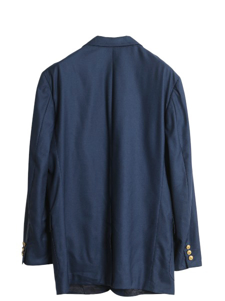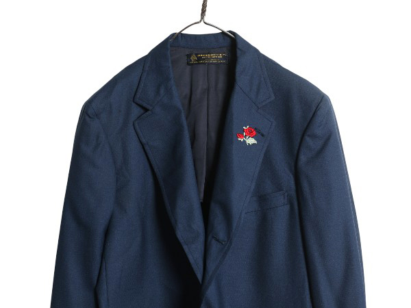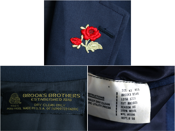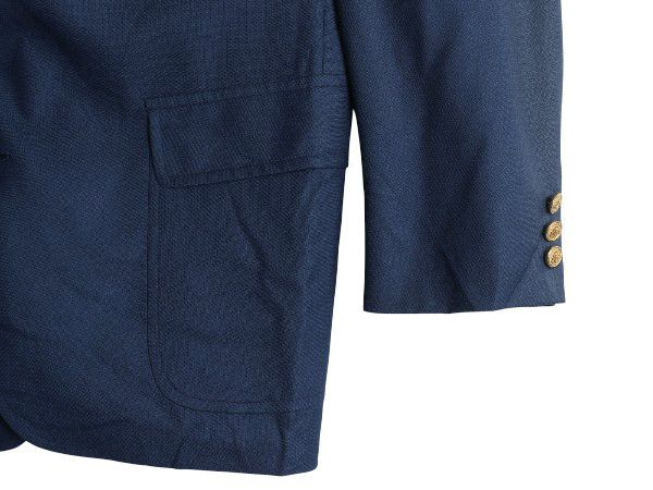 90年代のオールド ブルックスブラザーズ のテーラードジャケットです。 素材は、100% WOOL しっかりと目の詰まったウール生地 羊毛を細く撚った生地天然素材ならではの通気性と清涼感があり サラリとした肌触り、丈夫でシワになりにくいのが特徴のウール まったくチクチク感のない上質な素材 年間を通して着て頂ける素材が使用されています。 内側に脱ぎ着のしやすいスムースライナーが付きます。 MADE IN USA ( アメリカ製 ) フロントは、クラシカルな段返り 3つボタン ボタンはすべて、高級感のある立体的なロゴ入りの金ボタン 3ポケット、サイドポケットはフラップ付きパッチポケット 左ラペルにローズのワンポイント刺繍入り センターベントのクラシカルなデザイン 合わせやすいブルーネイビー 通常の紺ブレよりも色味がワントーン明るいグッドカラー 流行に左右されない、トラディショナルで 使い勝手の良いシンプルなグッドデザイン 200年を超える歴史を持つブルックブラザーズ 丁寧な仕立て、高級感のあるルックス シルエットの美しさは言うまでもありません 入手困難な90年代のオールド アメリカ製 こう言った商品はいつでも手に入る物ではありません。 どこに出かけても恥ずかしくない 洒落た大人のジャケット ブルックスブラザーズのセンスと美学が伺える商品です。 |