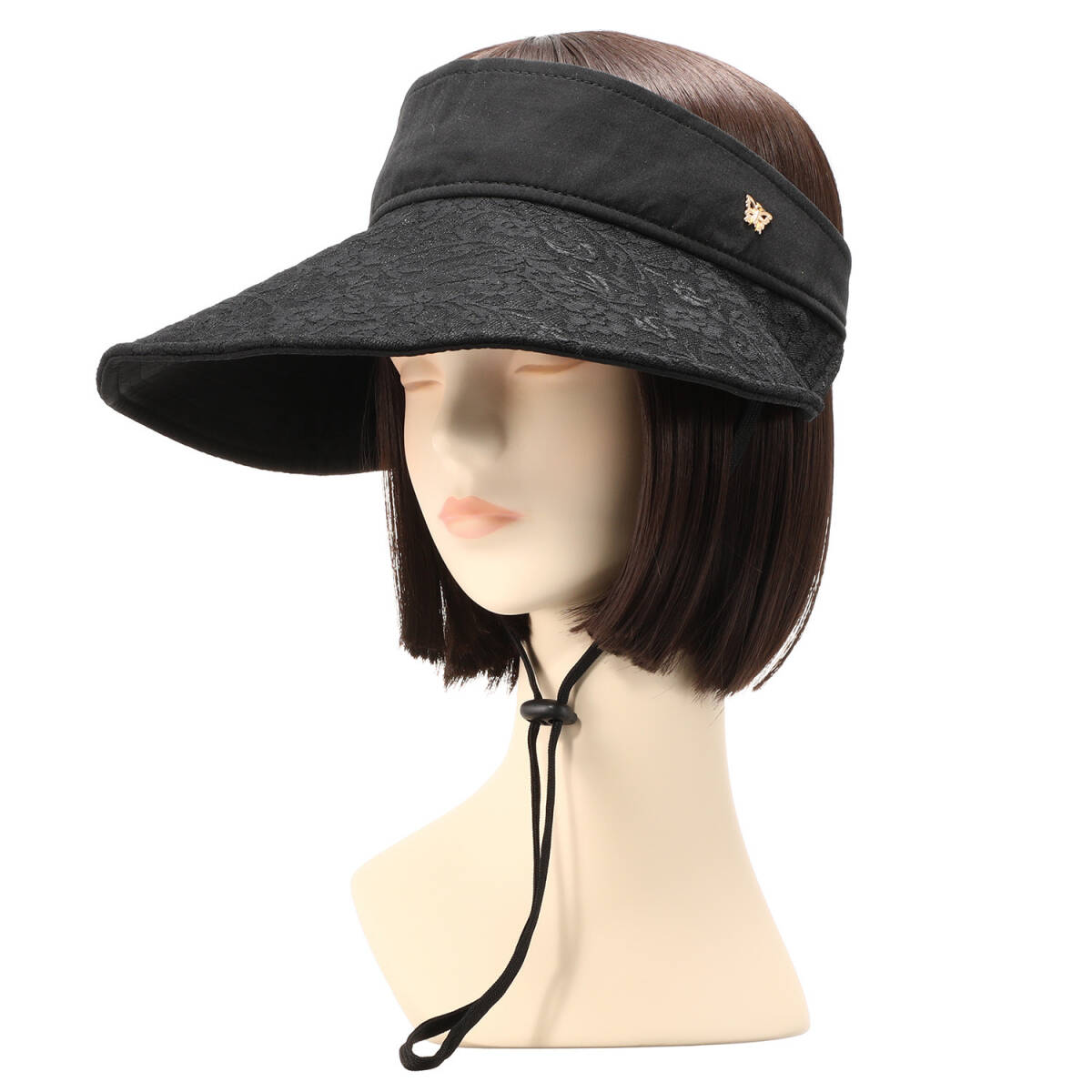 | つば部分に優美なリアルレースを使用したエレガントなデザインのサンバイザーです。 つば周りにワイヤーを内蔵しているため、つばの向きや角度を好みに合わせて調整できます。 くるくると丸めてコンパクトにできるので、バッグの中でもかさばりにくく、持ち歩ちにも便利です。 つば部分のUVカット率は99.9%以上で、お顔まわりの紫外線対策ができます。 後頭部の面ファスナーでサイズ調節が可能なので、お好みのフィット感で使用可能。 取り外し可能なあごヒモが付いており、ヒモの長さを固定するストッパーも備えているため、風が強い日のアウトドアシーンでも安心です。 さらに、蝶のチャームがアクセントとなって華やかさを演出しています。 ヘアスタイルを活かしつつ紫外線対策ができる、日々のお出かけやご旅行に最適なアイテムです。 【詳細】 ・種類:サンバイザー 【素材】 ・本体生地:ナイロン90%、ポリウレタン10% ・レース:ナイロン90%、ポリウレタン10% 【サイズ】 ・対応内周:約54cm?60cm ・つばの長さ(最大幅)約12.5cm ・面ファスナーでサイズ調節可 ・あごヒモ付き(ストッパー付、取り外し可) 【重さ】 ・約75g 【メンテナンス(絵表示ラベル)】 ・洗濯機・手洗い:不可 ・漂白処理:塩素系・酸素系漂白不可 ・タンブル乾燥:不可 ・アイロン仕上げ:不可 ・ドライクリーニング:不可 ・ウエットクリーニング:不可 【原産国(地)】 ・中国製 |