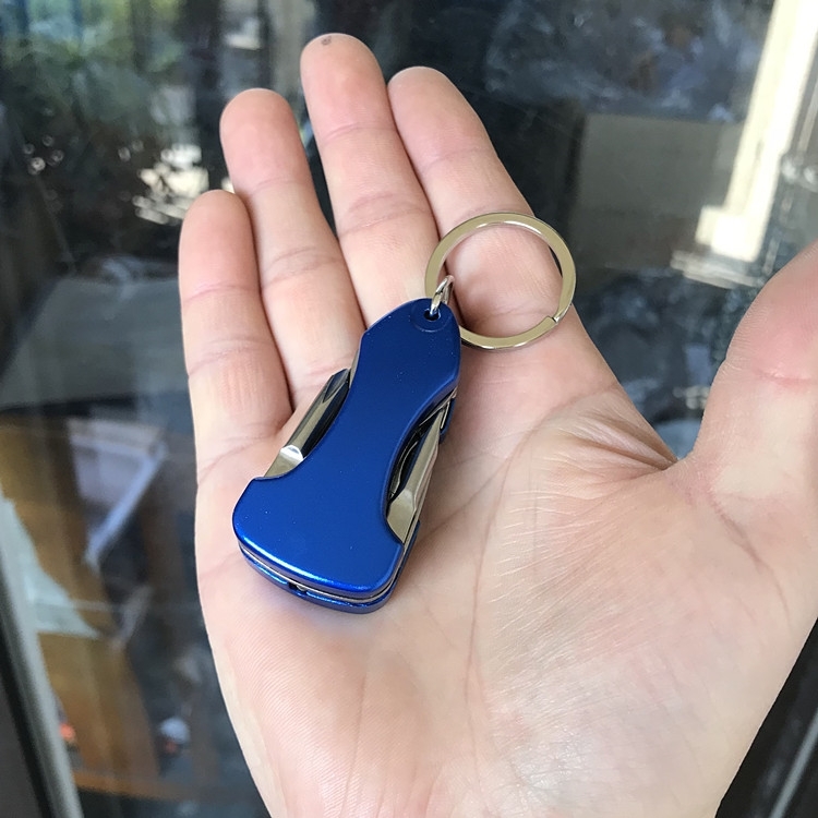 送料無料 ゆうパケット 多機能ミニ 折りたたみナイフ マルチツール アウトドア LED付き ブルー