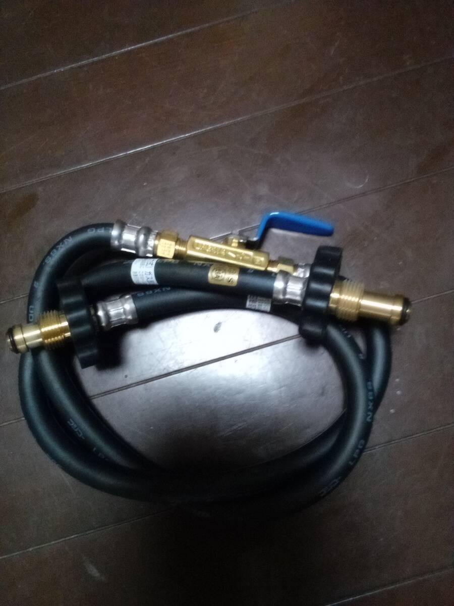 使用の際はガスボンベタンクが2本接続使用しガスタンクボンベからガスタンクボンベにガスが移せると言うホースです。