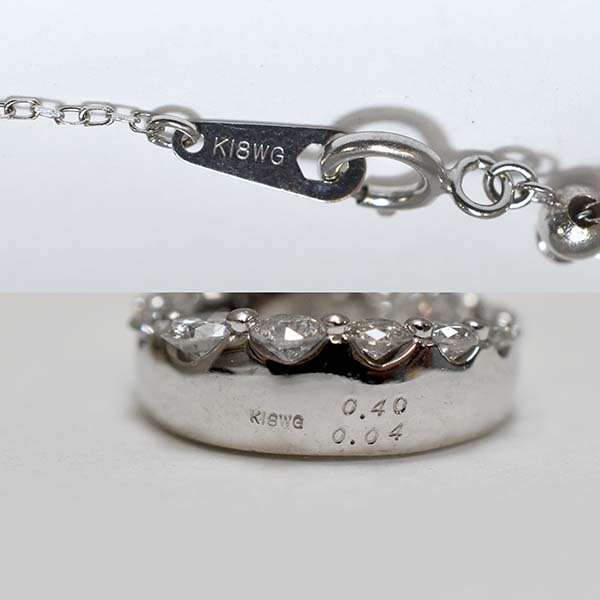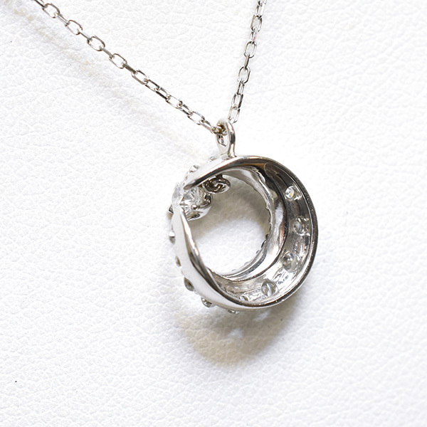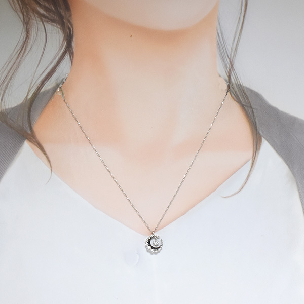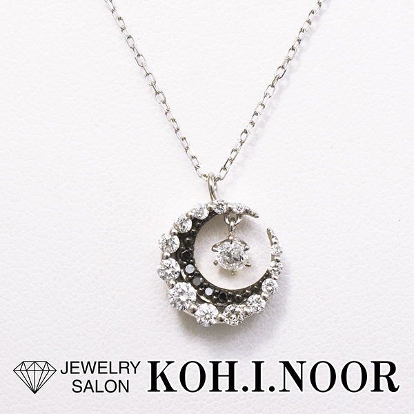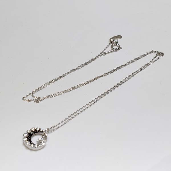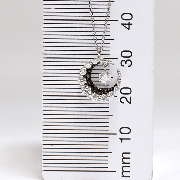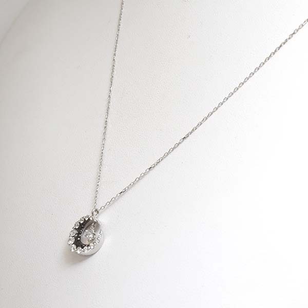 三日月モチーフの中でダイヤが揺れる18金ホワイトゴールド製のペンダントネックレス。