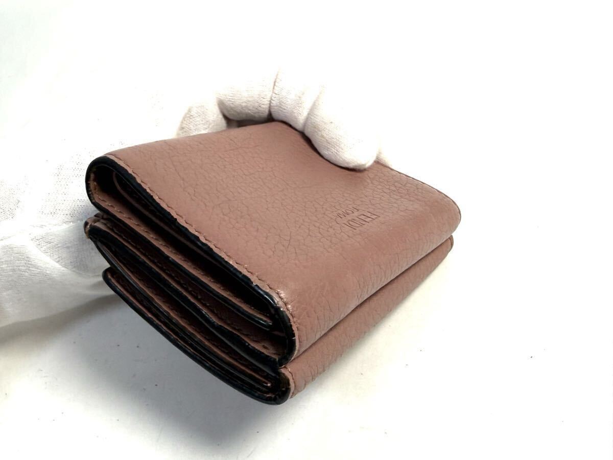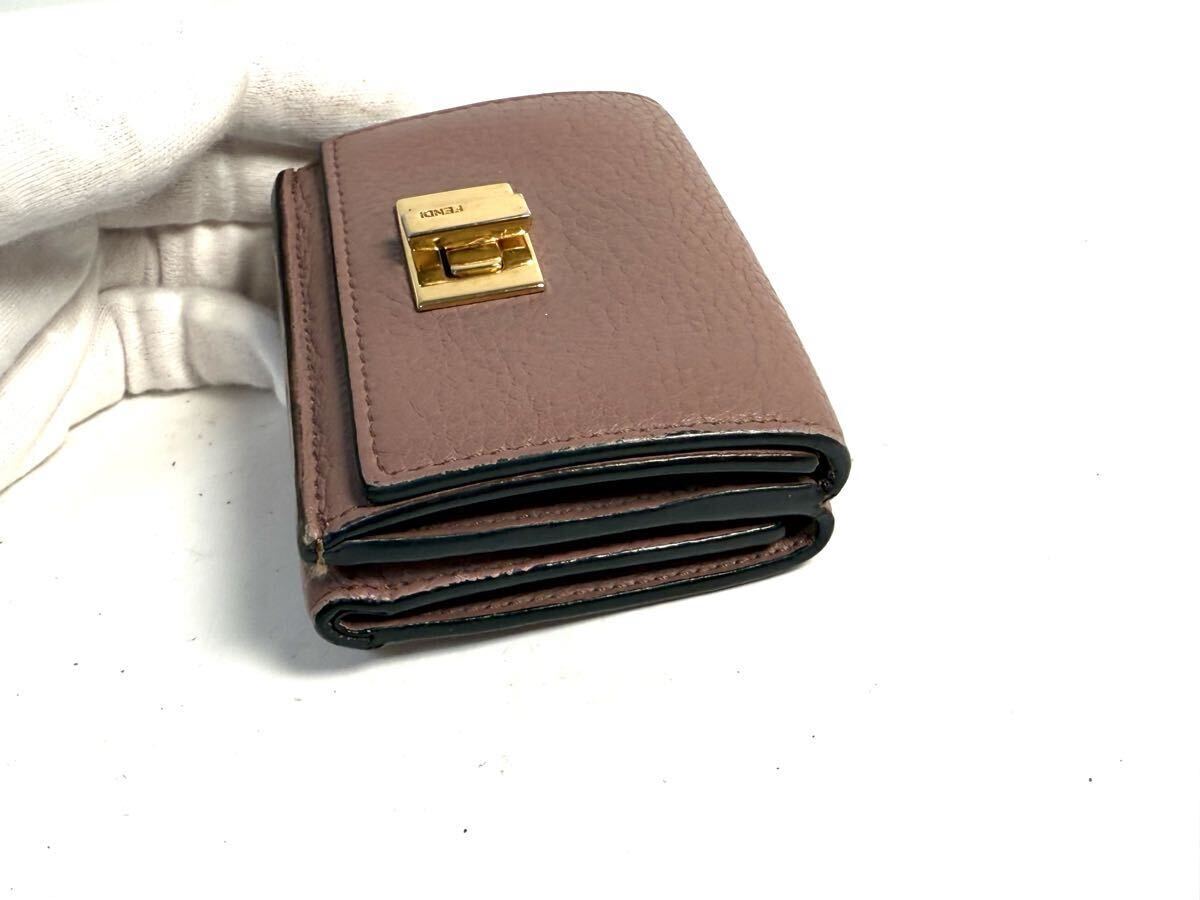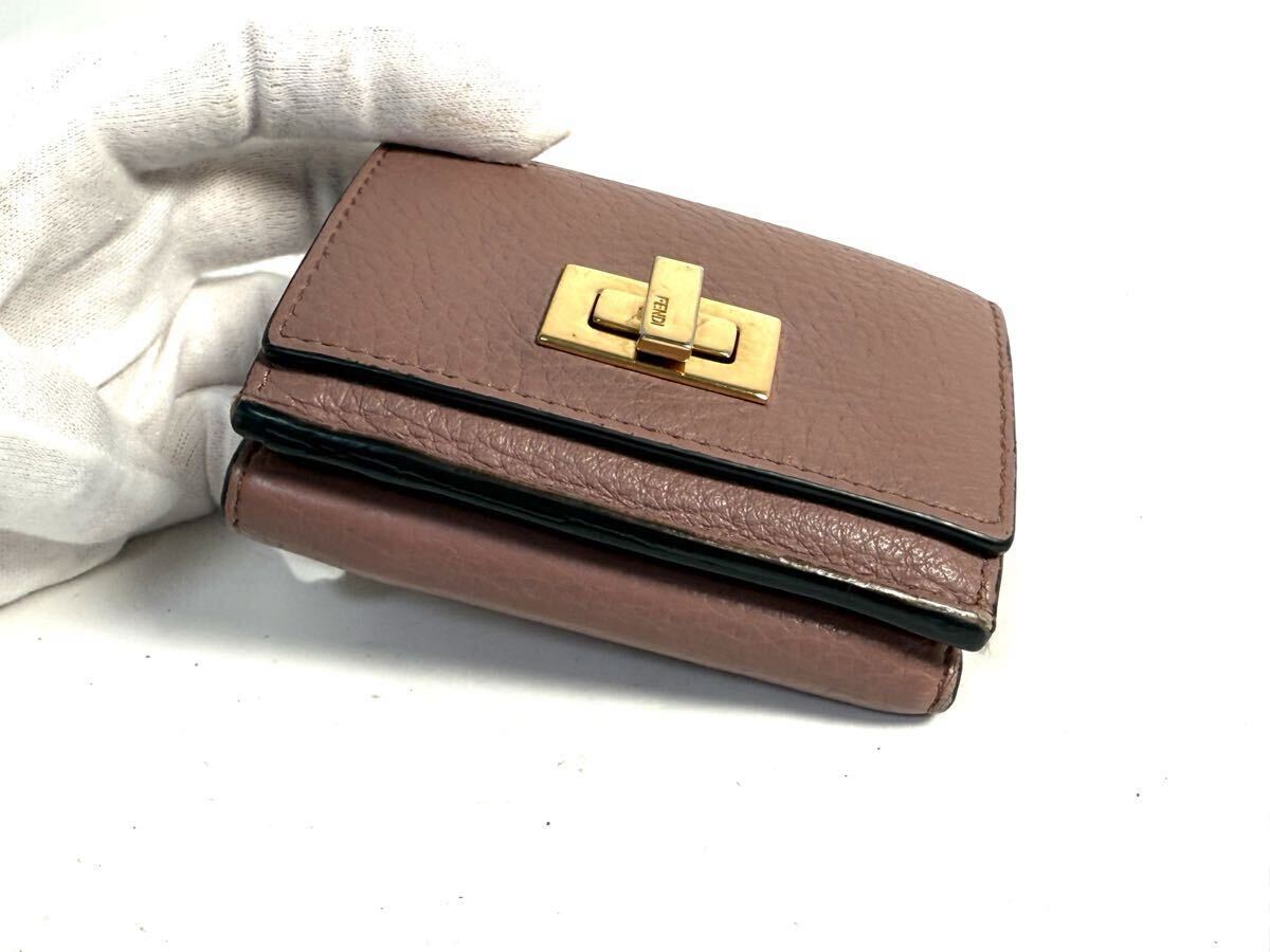 852 美品 FENDI フェンディ / ピーカブーマイクロトリフォールドウォレット 三つ折り財布 ミニ財布 グレインレザー ベージュ