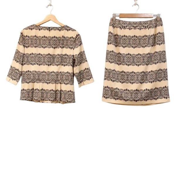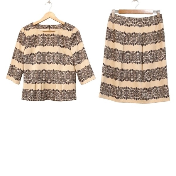 レリアン Leilian スカートセットアップ - ベージュ×黒 レディース 美品 レディーススーツ