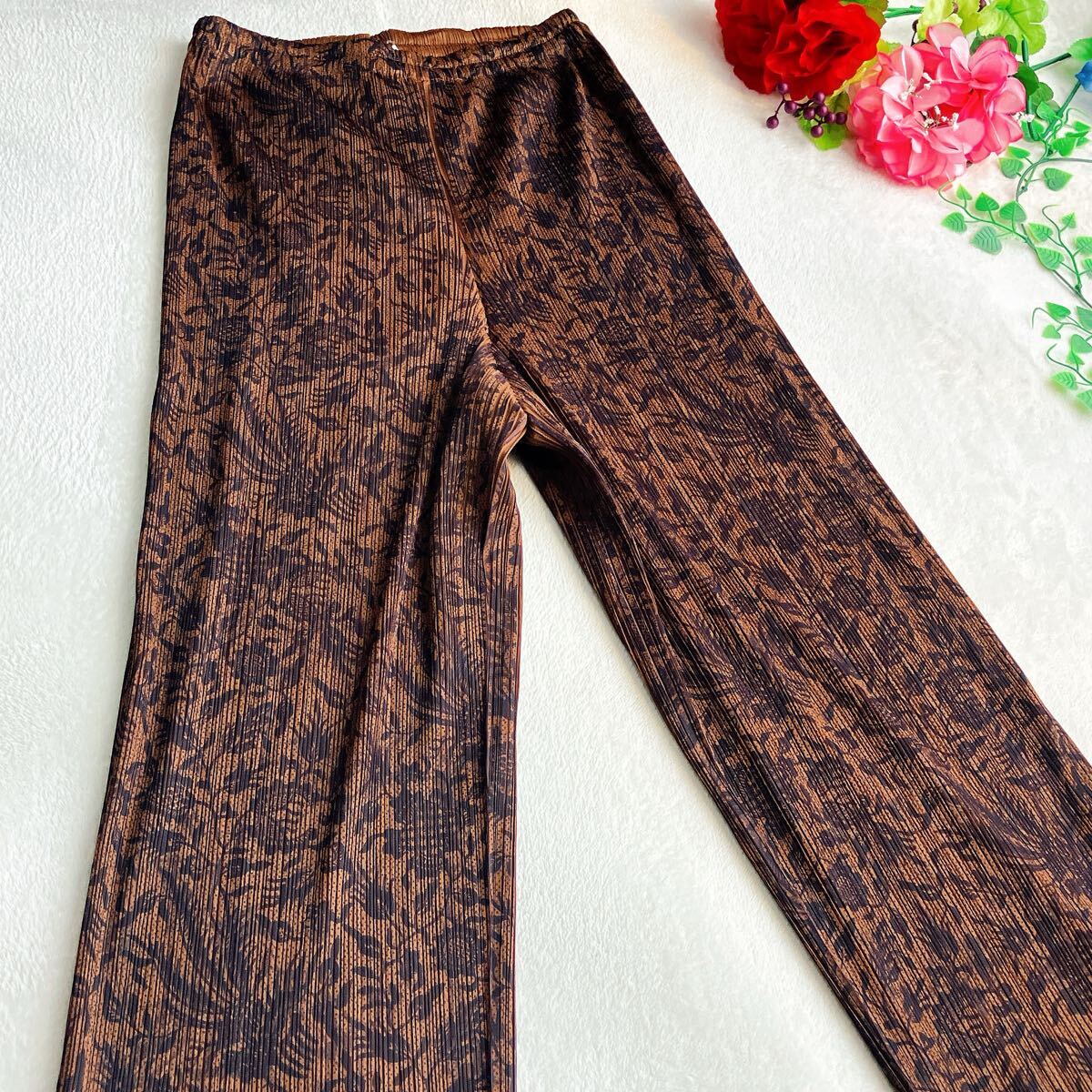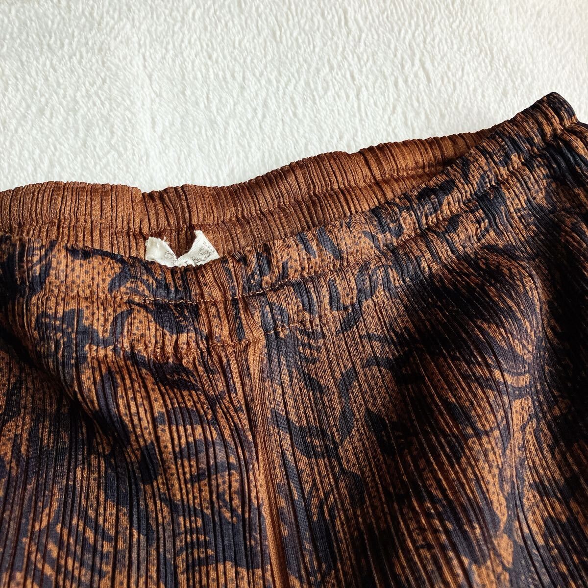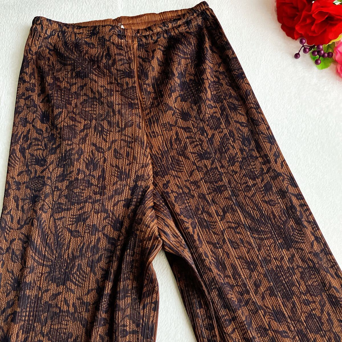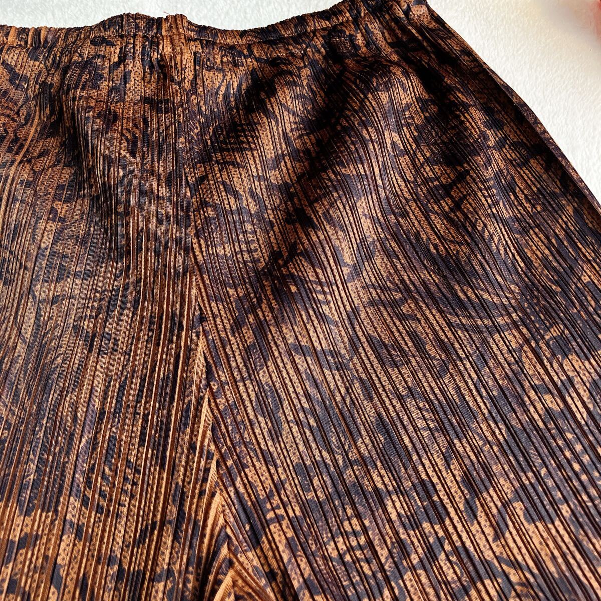 PLEATS PLEASE ISSEY MIYAKE プリーツプリーズ イッセイミヤケ★総柄 ハイウエスト ワイドパンツ 花柄 裾切替え ブラウン×ブラック