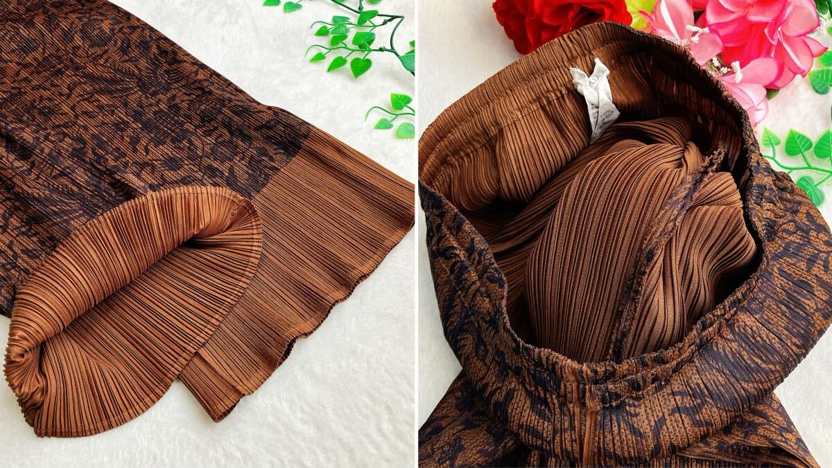 総柄×裾切替えプリーツのデザインが目を惹く、プリーツプリーズならではのモード感溢れるワイドパンツです。
