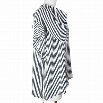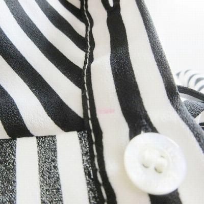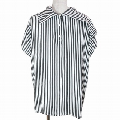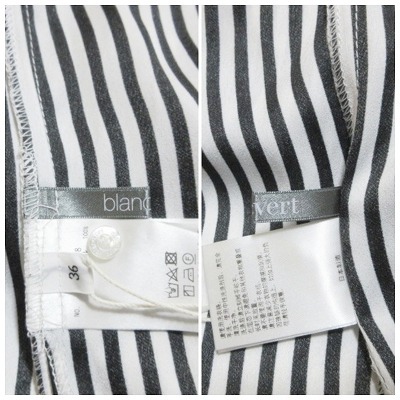 未使用品 ブランベール blancvert タグ付き シャツ ブラウス プルオーバー ストライプ スタッズ フレンチスリーブ 半袖 36 S相当 黒 白 X