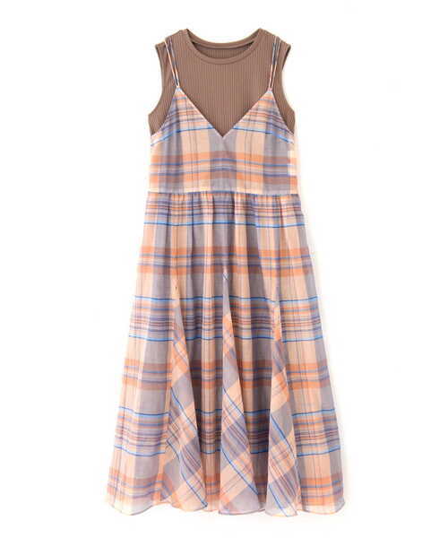 キーワード:ワンピース チェック ノースリーブ フレア ロング
