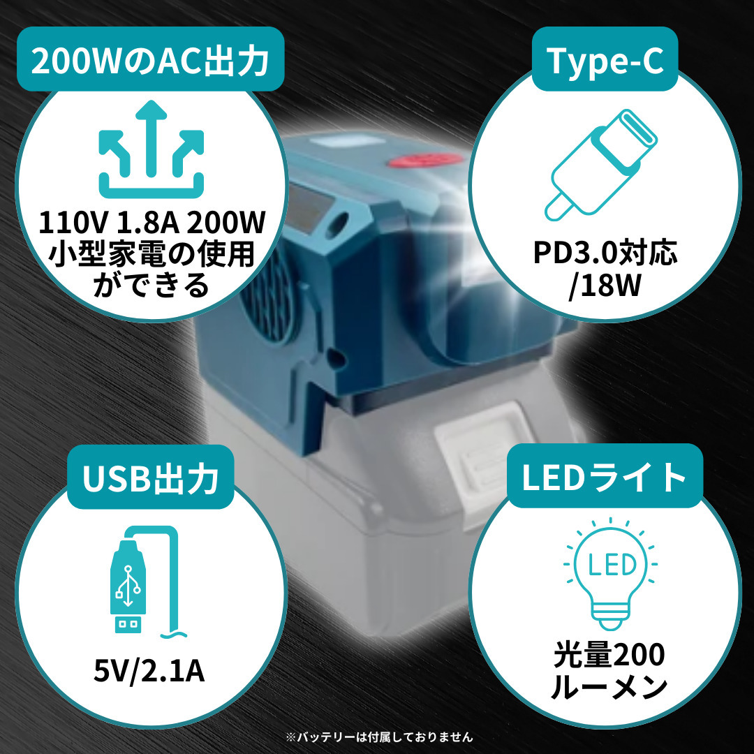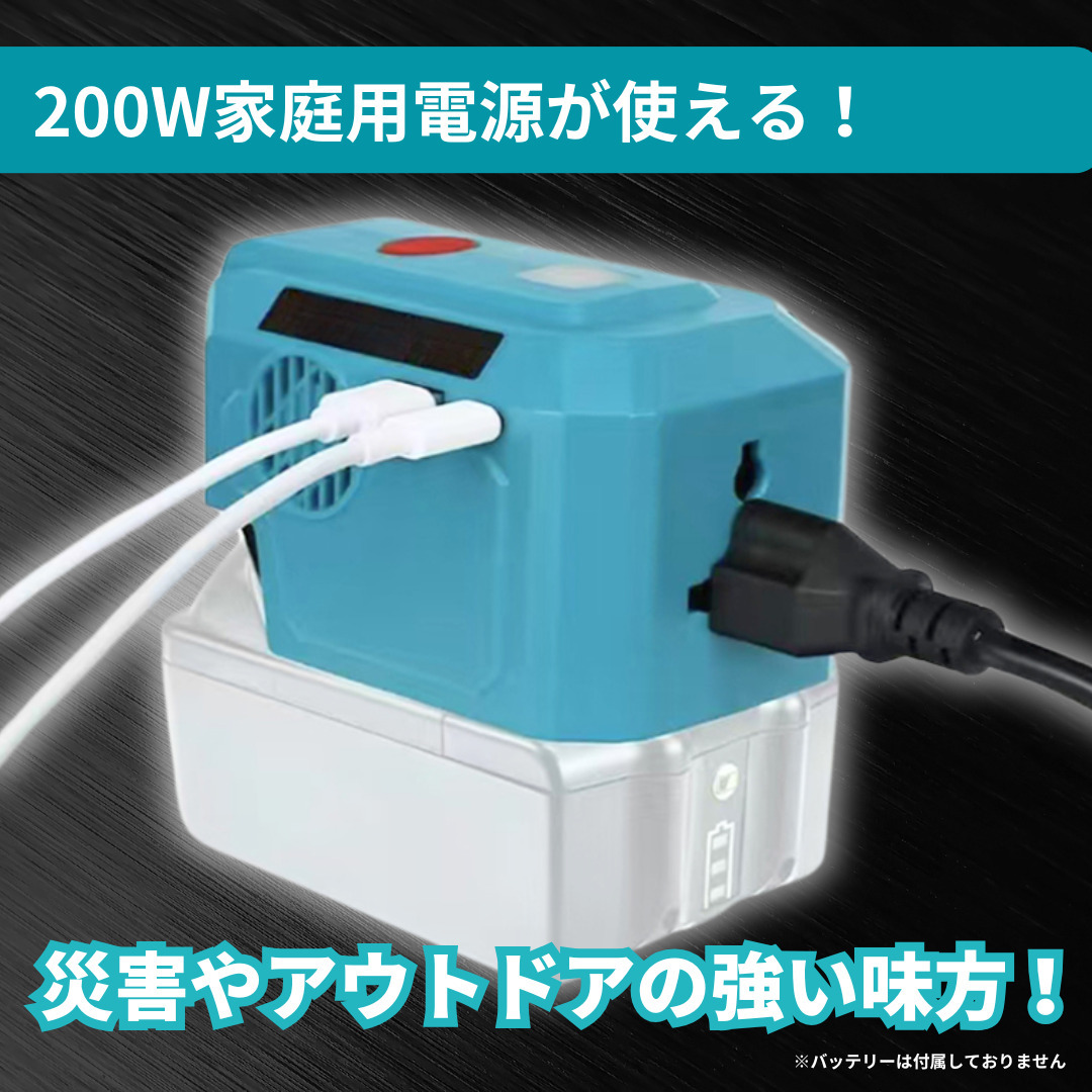 A マキタ 互換 インバーター 200W PD3.0 Type-C LED充電式 18V 防災 非常用 家庭用 AC100V USB makita BL1860B 1830 (INS02-BL)