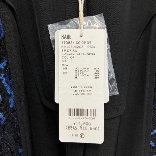 ハレ HARE タグ付き ハイショクレース キリカエワンピース ロング レース 黒 ブラック F フリーサイズ