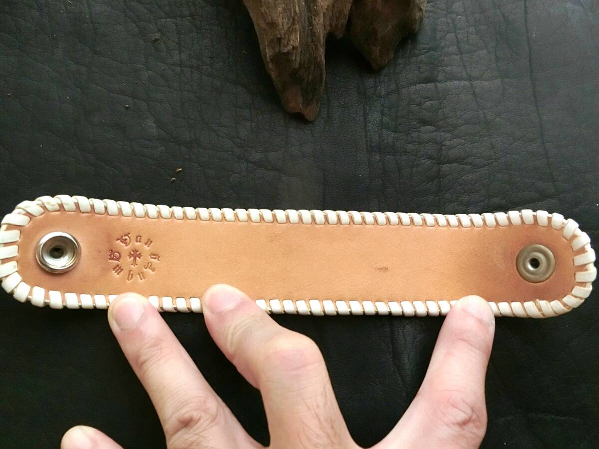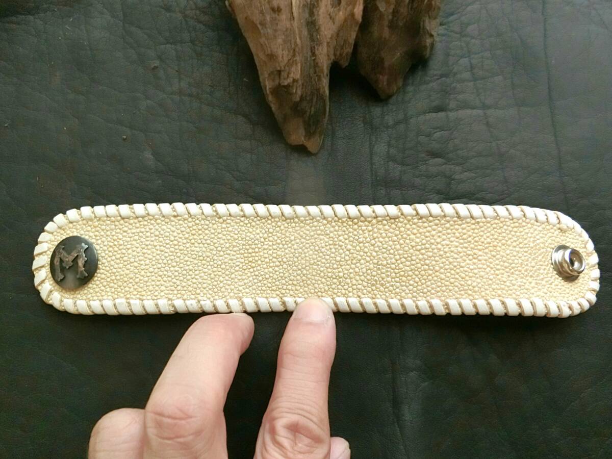 極美品 VAN AMBURG LEATHERS ヴァンアンバーグレザーズ × MIC恵比寿 コラボ スティングレイ(エイ革) シルバー 925コンチョボタン付き レザーブレスレット