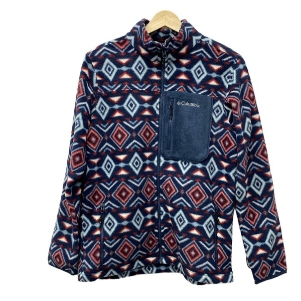 コロンビア columbia ブルゾン サイズL - ネイビー×レッド×マルチ レディース 長袖/フリース/ジップアップ/秋/冬 美品 ジャケット