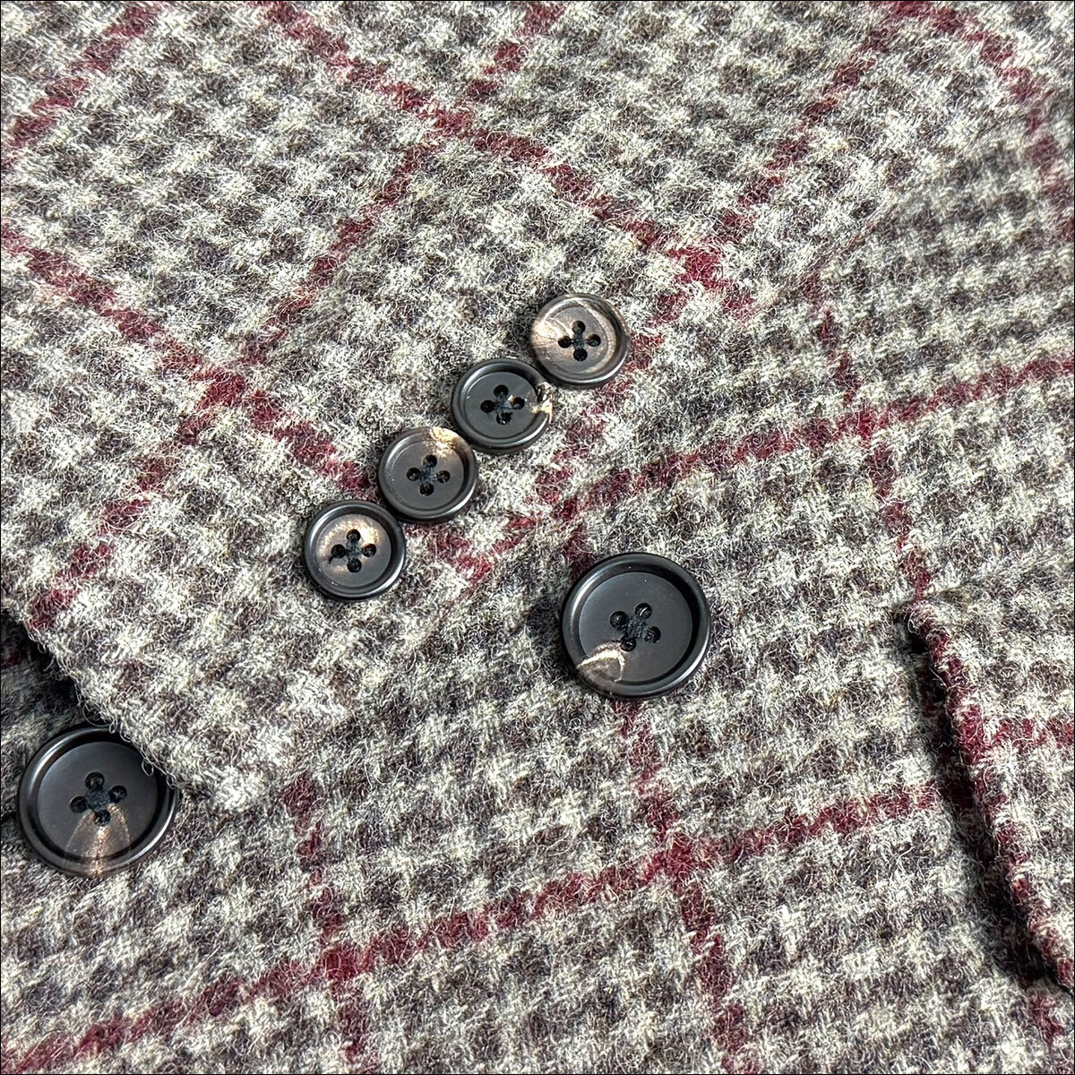 デザイン:フロントダブル4つボタン2掛け、総裏地、センターベント、袖開き見せ。