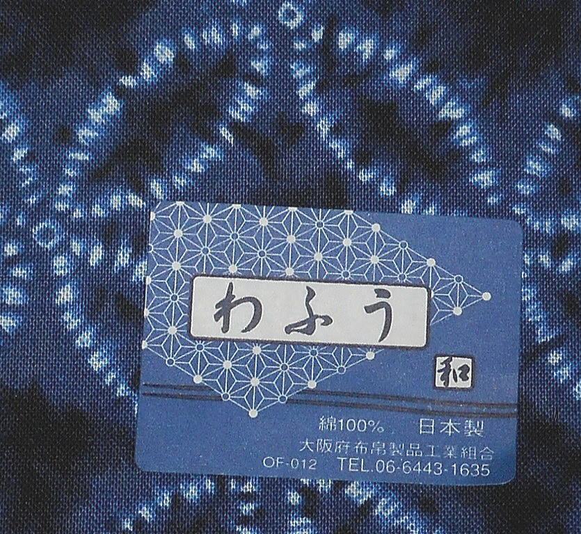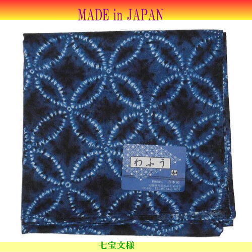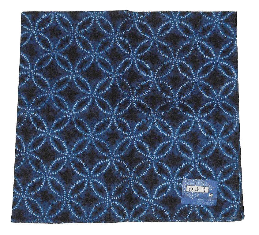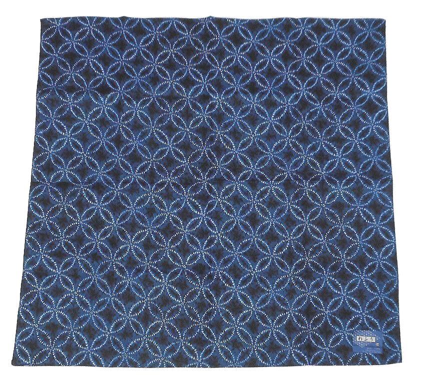 ◆和風 バンダナ*小風呂敷『 七宝文様 * まだら深藍紺ネイビー』綿100%■ 53×52cm★長寿や繁栄、調和を象徴する仏教サイケデリック柄