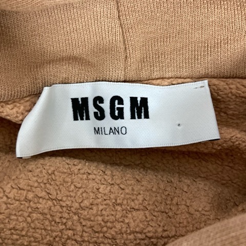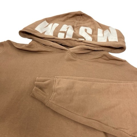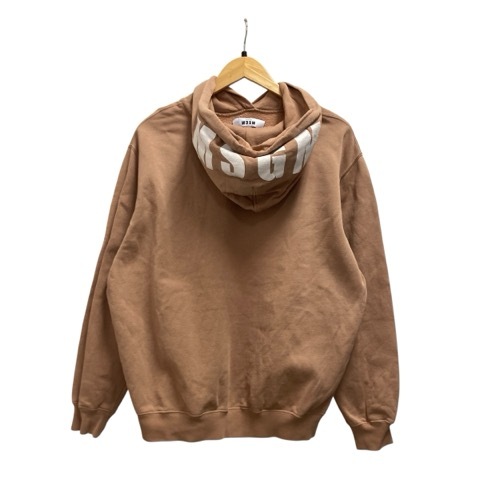 エムエスジーエム MSGM トレーナー パーカー 長袖 フード ロゴプリント コットン 195799-23 XS 茶 ブラウン 白 ホワイト レディース
