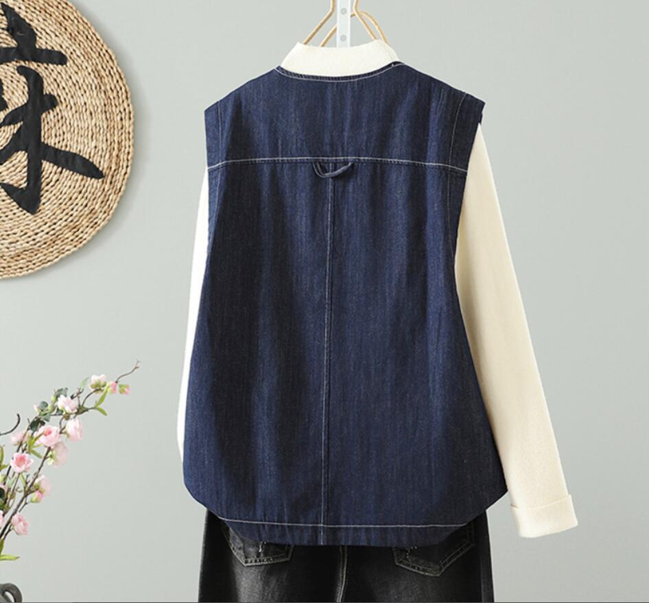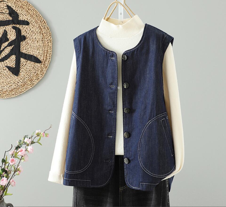 新入荷~ デニムベスト レディース ジーンズベスト カジュアル デニムアウター 羽織り 前開き ノースリーブ ゆったり 大きいサイズ
