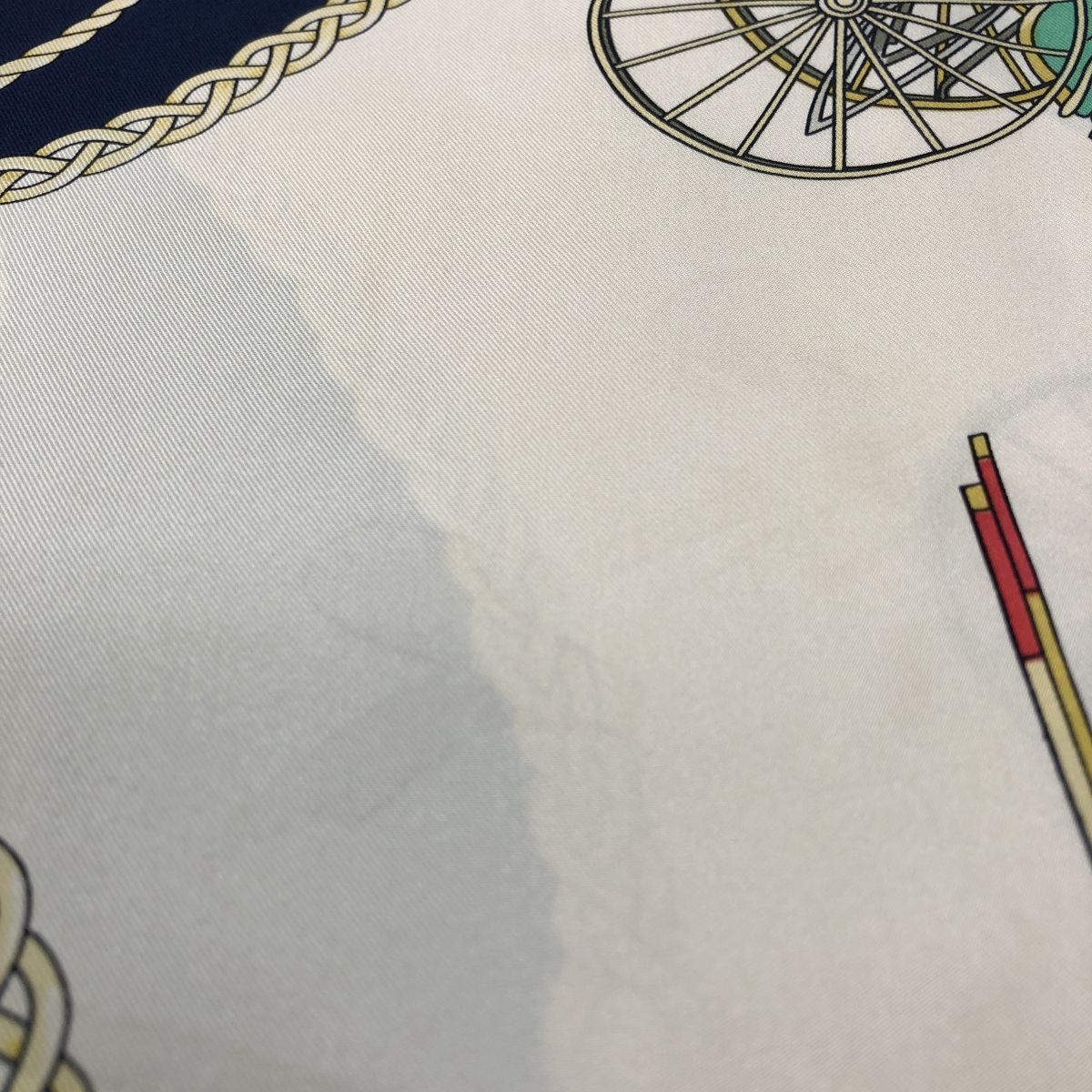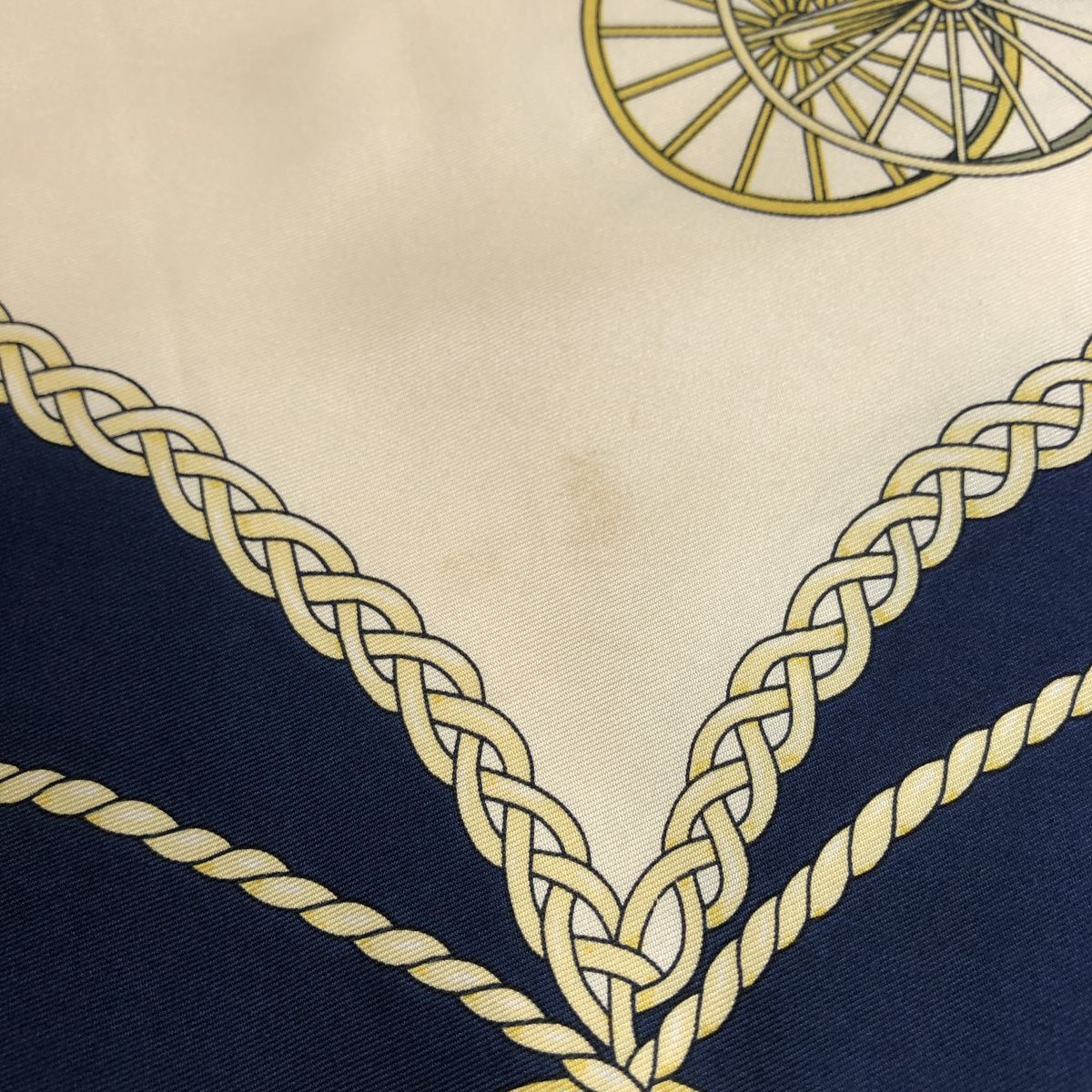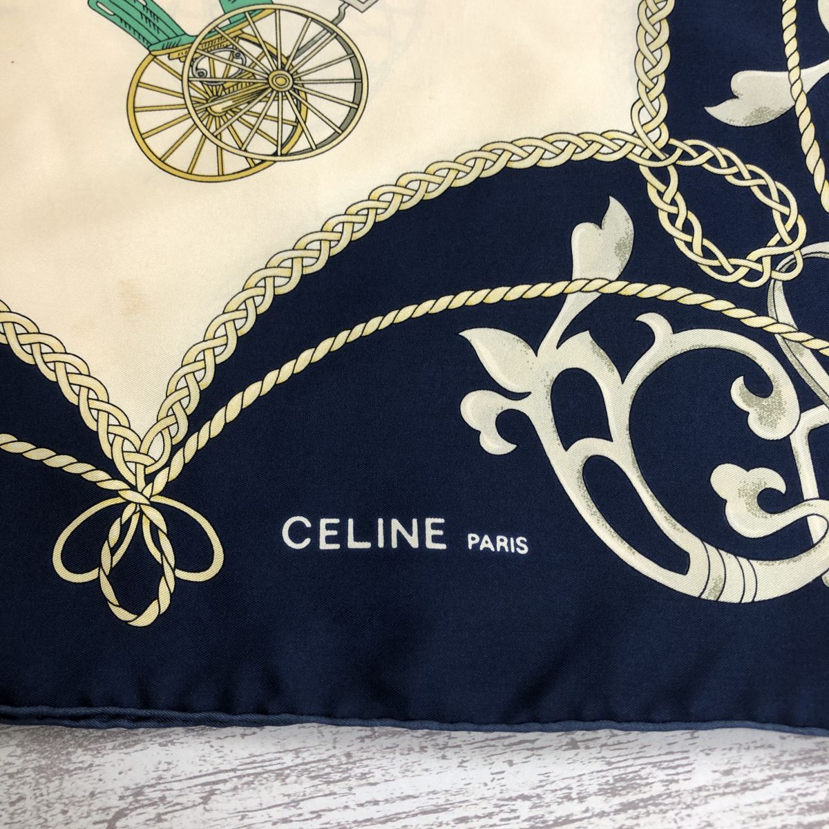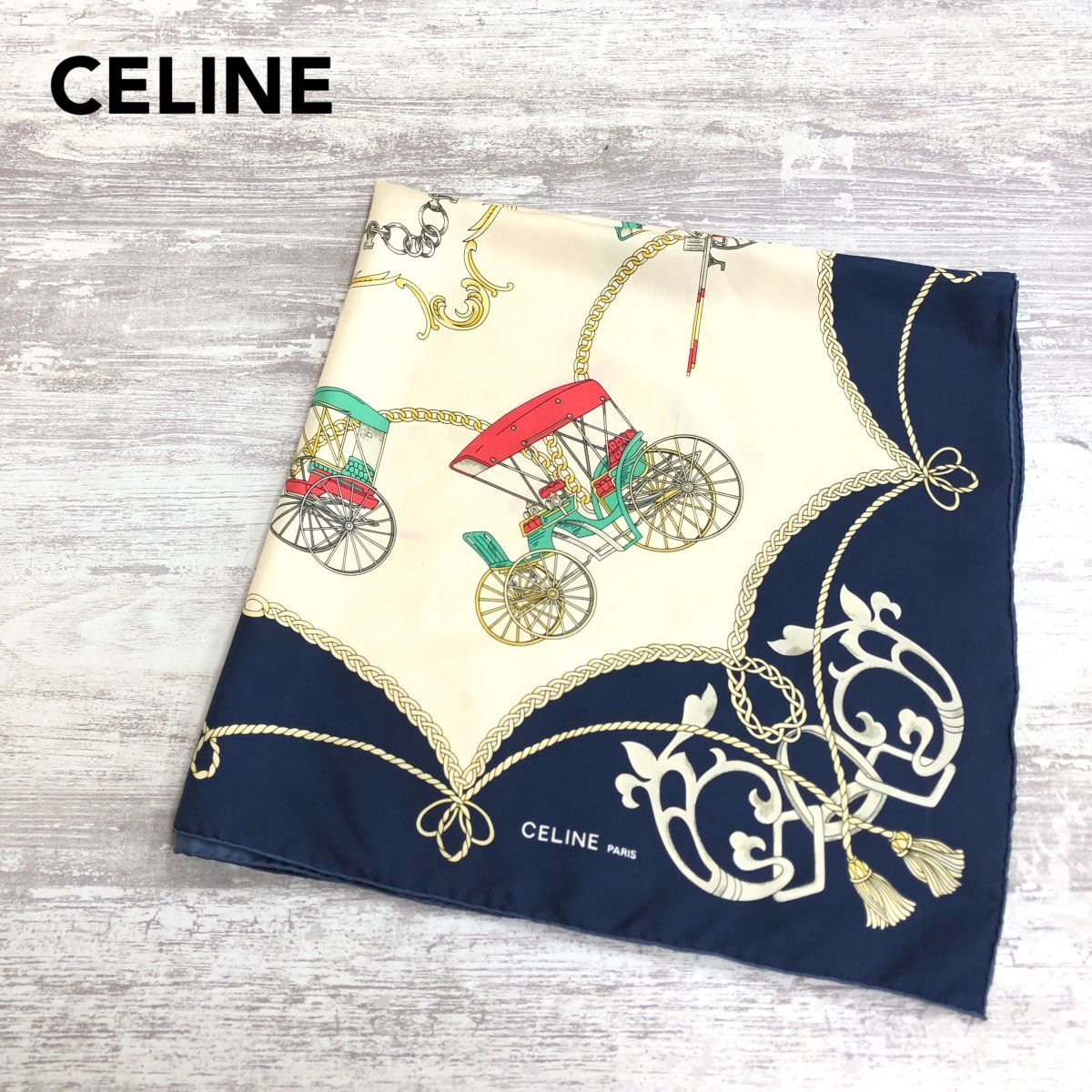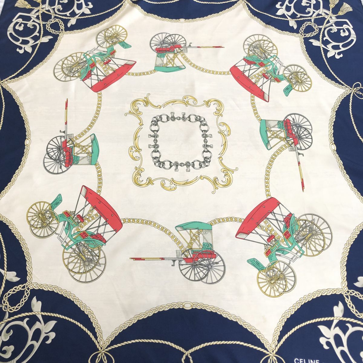 2H2616-K◆CELINE セリーヌ スカーフ◆ファッション小物 馬車柄 ブルー系 シルク レディース