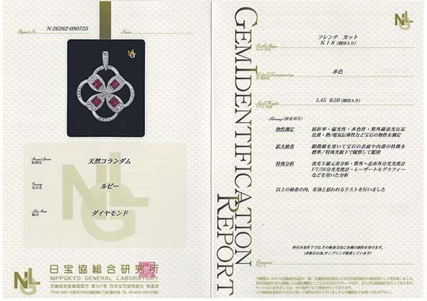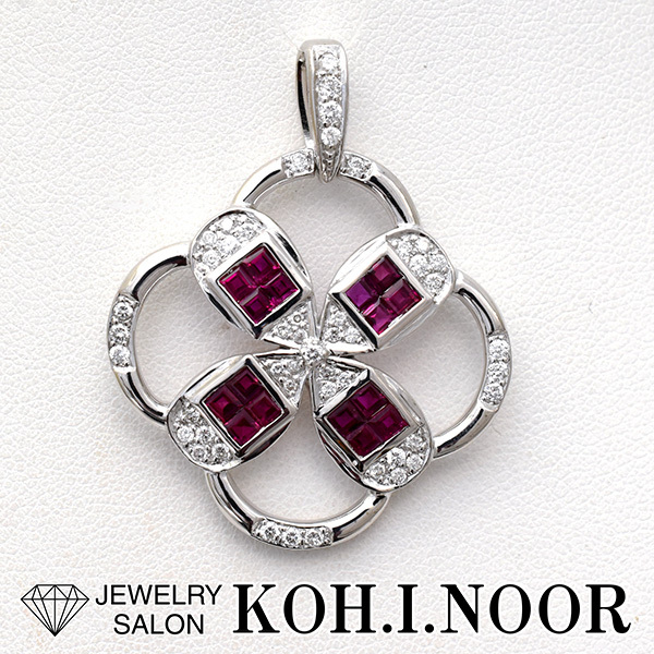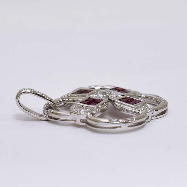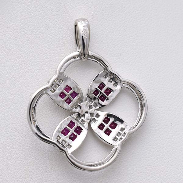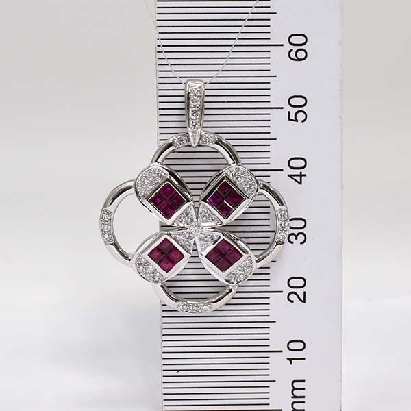 ルビーをセットした18金ホワイトゴールド製のペンダントトップ。