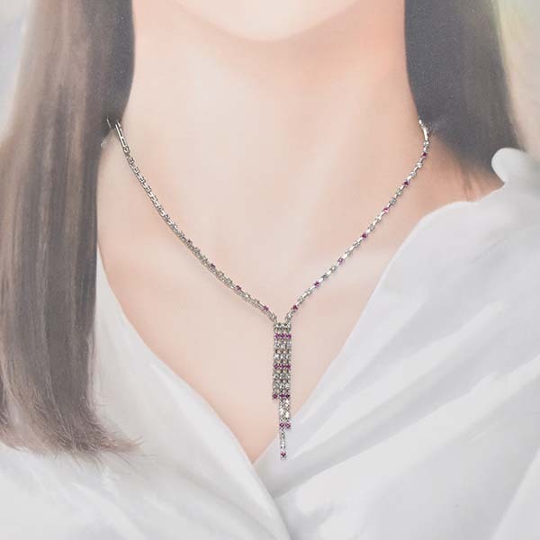 房が揺れる18金ホワイトゴールド製のネックレス。