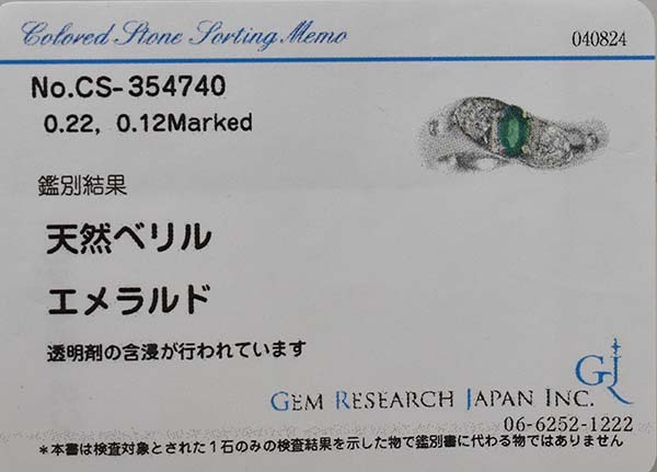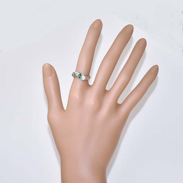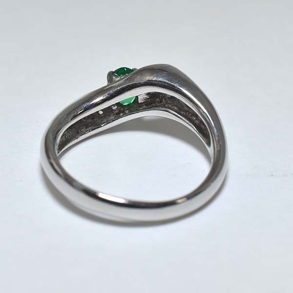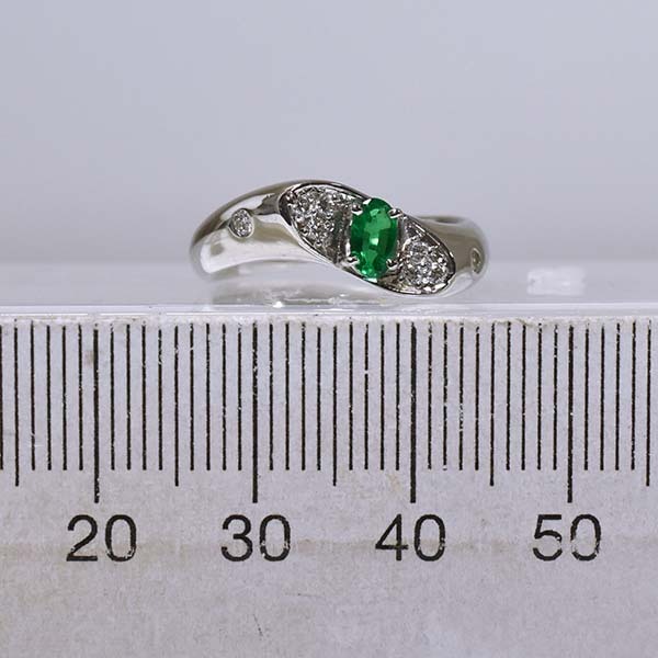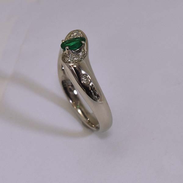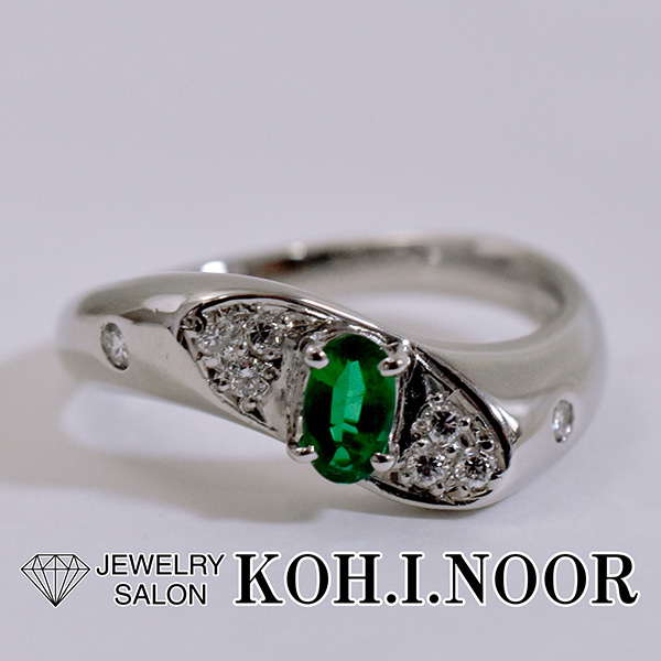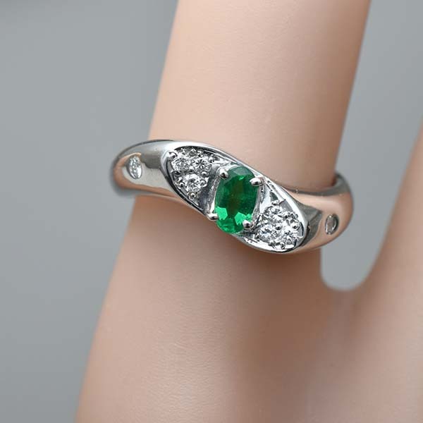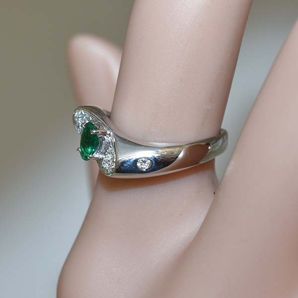 エメラルドをメインにしたプラチナ製のファッションリング。