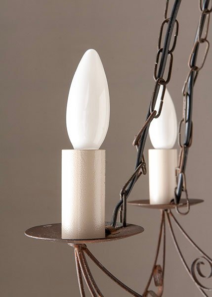 商品説明:アイアンの曲線がちょっと贅沢な雰囲気のシャンデリアです。シンプルなデザインなので、いろんな場所で使えます。