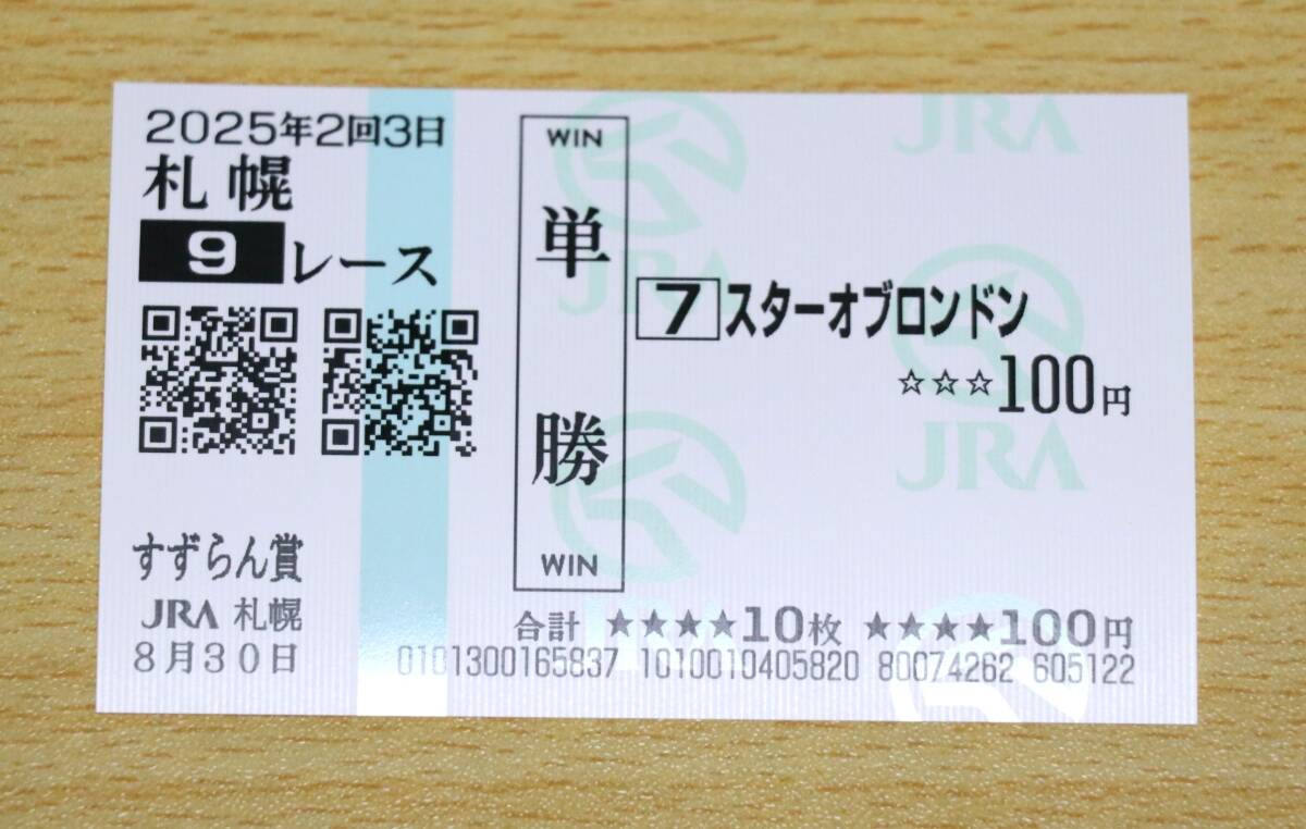 スターオブロンドン 札幌 9R すずらん賞 (2025年8/30) 現地単勝馬券(札幌競馬場)です。気に入って頂けた方の落札を心よりお待ちしております。 商品は定型郵便(110円)又は又はゆうパケットポストminiで発送となります。 厚さの関係上、定型郵便の場合は片面段ボール補強、ゆうパケットポストの場合は両面段ボール補強となります。どうかよろしくお願い致します。