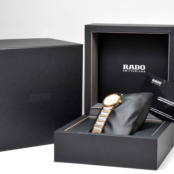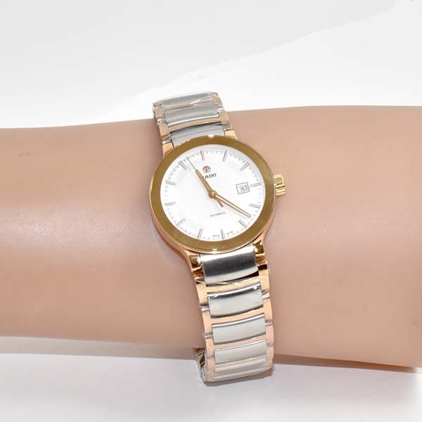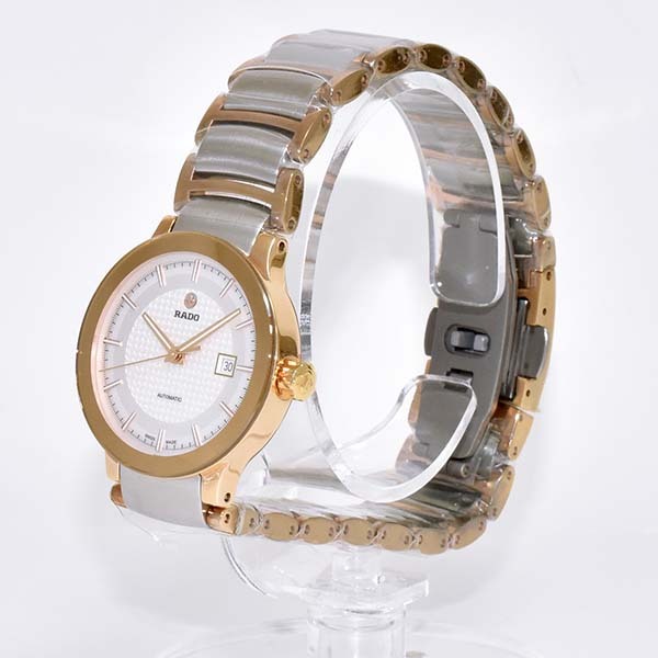 金メッキが華やかな印象を与えるラドーのレディースウォッチ、セントリックス オートマティック。