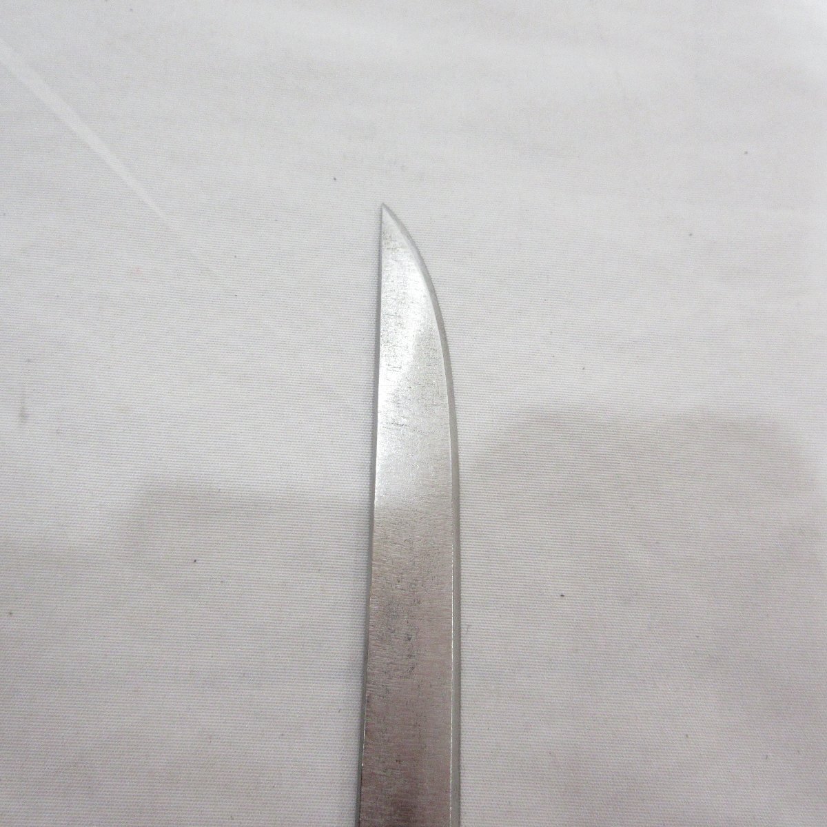 【商品名】ハンドメイド 切出し 小刀 小柄 穂先小刀 ペーパーナイフ 【材質】鋼(焼き入れをしています) 【サイズ】全長200㎜・刃長100㎜・元幅12㎜・厚み2㎜ 【付属品】なし 【商品状態】新品未使用 ★保管中に生じた変化・スレ等が見られる場合がございます。 ★ハンドメイド品の為、個体差がございますのでご了承下さい。 ★サイズについては画像をご参照ください。 ★使用上の不具合はございません。 ★画像にてご確認の上、ご不明な点はお問合せ下さい。 【出品形態】代行出品 【お支払方法】 ★クレジットカード決済 ★PayPay ★コンビニ(セブン-イレブン) ★コンビニ(ファミリーマート、ローソン、その他) ★paypay銀行振込 ★ゆうちょ銀行振込 ★三菱UFJ銀行振込 | |||