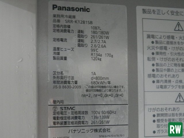 | 21年製 4面 縦型冷蔵庫 パナソニック SRR-K1281SB 100V 業務用 厨房 店舗 4ドア Panasonic 1087L |