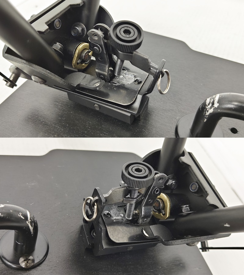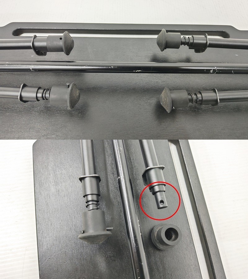 ・脚先端のゴム部分のスプリングとストッパーピンが欠品している為、固定できず外れていますので、